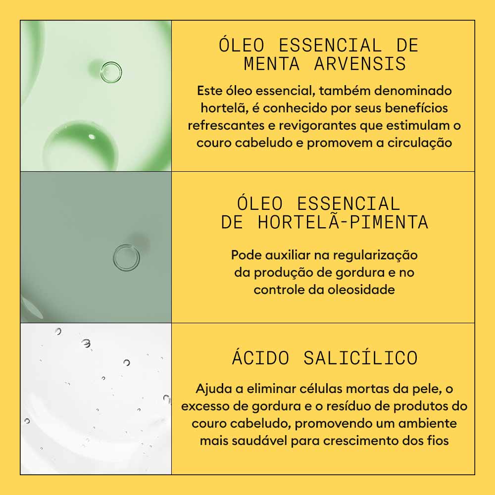 • Óleo de Hortelã refresca o couro cabeludo desde o primeiro uso.