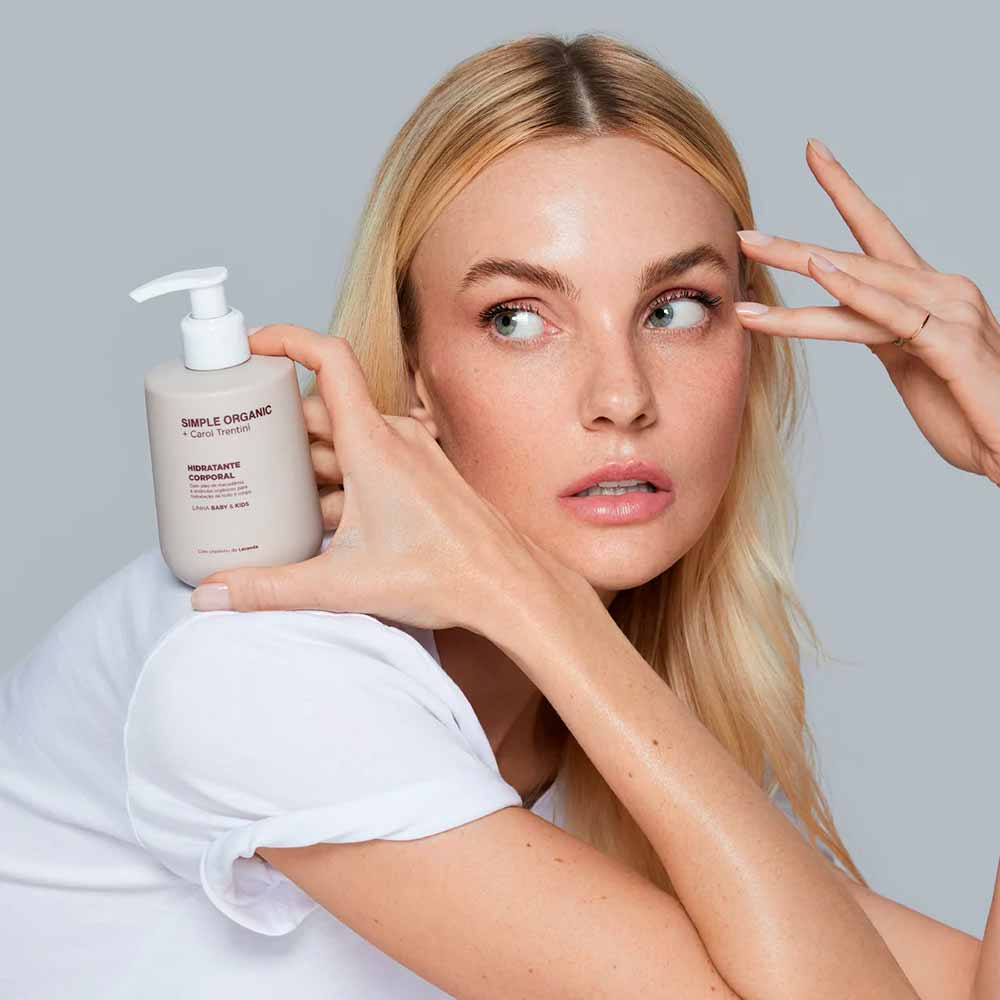 SIMPLE ORGANIC + CAROL TRENTINI: nos unimos à mãe, modelo e empresária Carol Trentini e desenvolvemos juntos a linha Baby & Kids, 100% Clean Beauty para toda a família. Com fórmulas seguras, conscientes, e livres de ingredientes problemáticos para a pele, cabelos e ambiente dos bebês e crianças, é perfeita para estimular os sentidos e fortalecer o vínculo e conexão entre os pequenos e quem cuida deles.