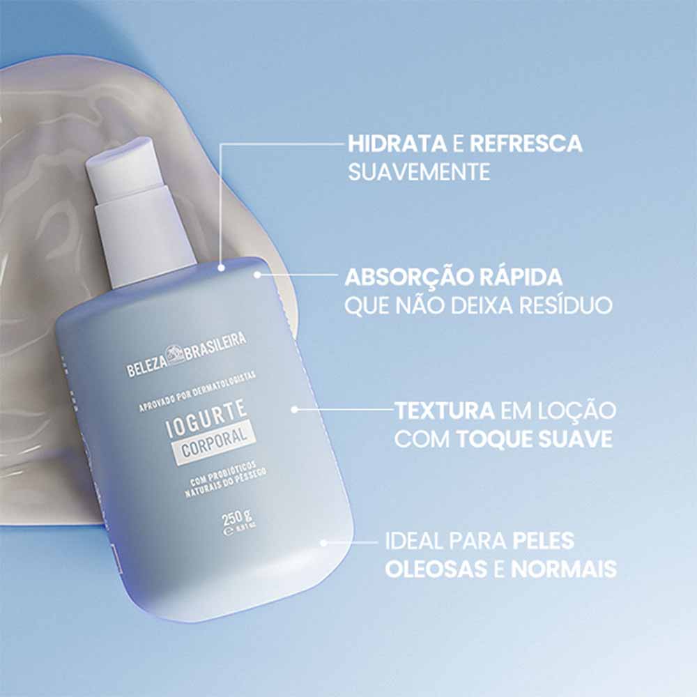 O Iogurte Hidratante Corporal proporcionando hidratação imediata e uma sensação de frescor irresistível. Possui ativos que promovem regeneração celular, hidratação profunda e uniformização do tom da pele.