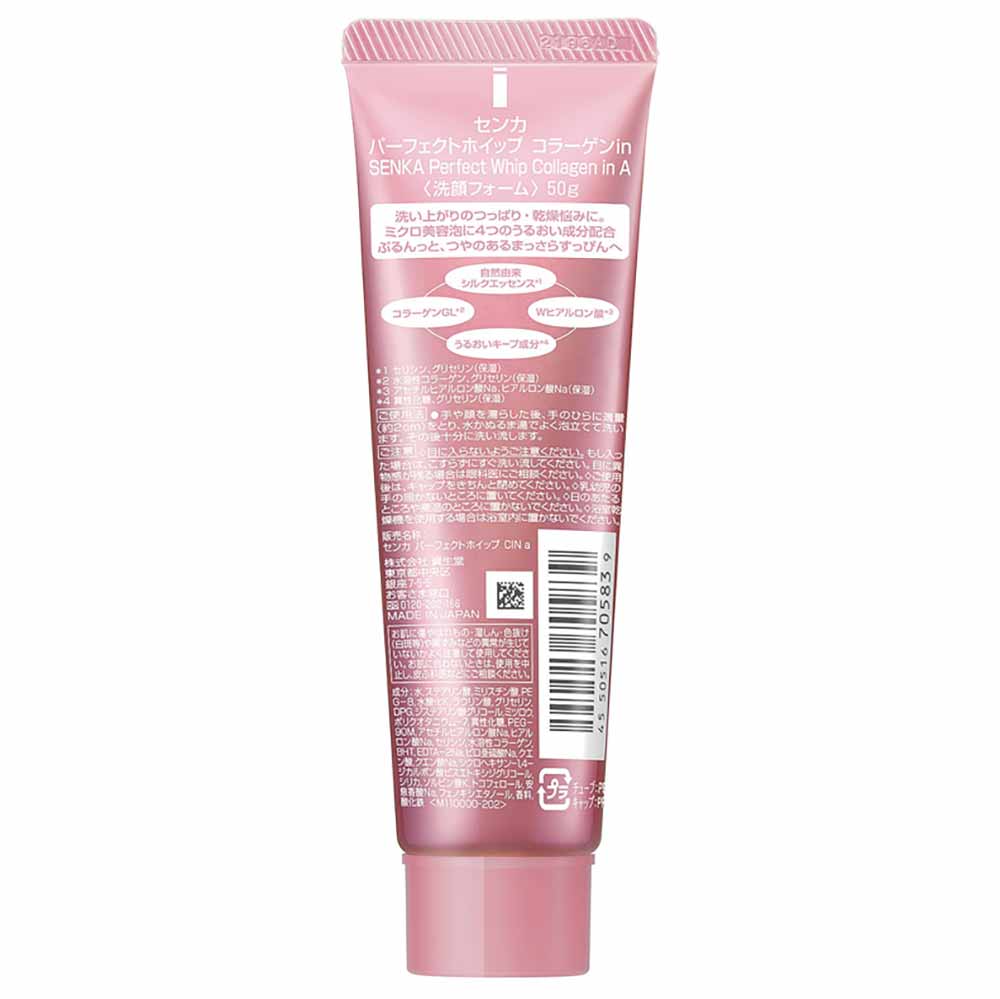 A Espuma de Limpeza Facial Senka Perfect Whip Collagen In foi desenvolvida para proporcionar uma limpeza profunda e delicada. Sua fórmula exclusiva combina ativos de alta performance como Colágeno, que promove firmeza e maciez à pele, e Ácido Hialurônico Duplo responsável pela retenção de umidade e hidratação prolongada
