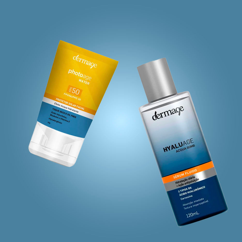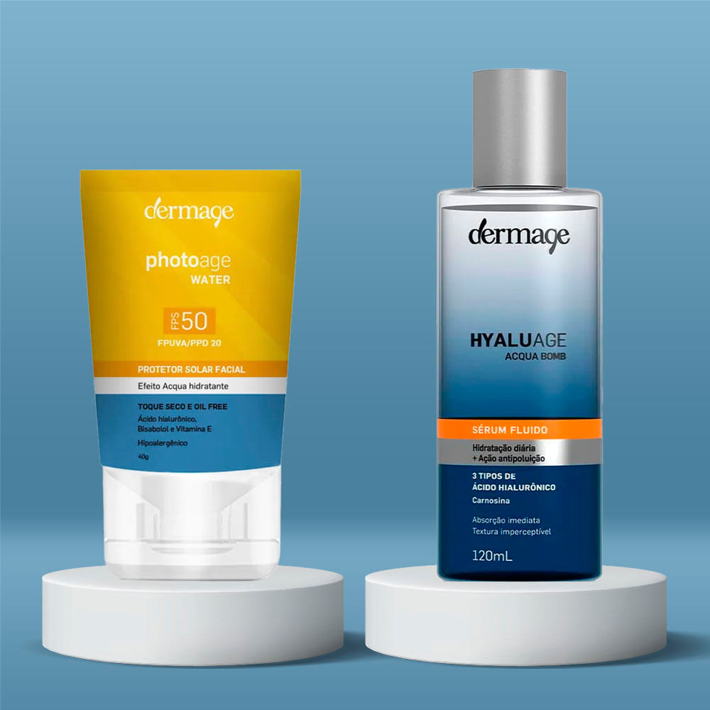 Dermage Kit - Loção Hidratante Facial Hyaluage Acqua Bomb + Protetor Solar Facial Photoage Water FPS50