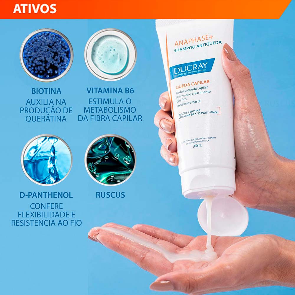 O shampoo anaphase + fortalecedor antiqueda é um shampoo dermocapilar com resultados comprovados na diminuição da queda capilar, crescimento dos fio e fortalecimento da haste. Com combinação exclusiva de ativos: Ruscus, Monolaurina, Biotina, Vitamina B6, D-Panthenol, atua direto no couro cabeludo aumentando a vasodilatação e área de penetração dos ativos, potencializando sua eficácia. O Anaphase + shampoo pode ser usado em monoterapia diminuindo 88% da queda¹ ou em terapia combinada com outros tratamentos, aumentando em até 6x a absorção do Minoxidil 5%². Desenvolvido na França. Testado e aprovado pelos dermatologistas. ¹Análise subjetiva de satisfação das voluntárias em uso regular de tratamento antiqueda e posterior associação de Anaphase+ Shampoo 3 vezes na semana por 3 semanas. ²Avaliação da eficácia de Anaphase+ shampoo como pré tratamento a aplicação de Minoxidil 5% H3 em explantes de couro cabeludo de voluntários portadores de AGA. Qualquer que seja a origem da queda de cabelo, é necessário preparar o couro cabeludo, reativar as suas funções vitais bem como as do cabelo. O primeiro gesto deve ser a escolha adequada do shampoo. Um shampoo que fortifica o cabelo desvitalizado e lhe devolve força, volume e vigor. Modo de Usar: Aplicar nos cabelos molhados, massagear e deixar agir por 2 a 3 minutos. Enxaguar e repetir a operação. Para melhores resultados, usar pelo menos 3 vezes por semana e combinar o uso de Anaphase+ Condicionador. Pode ser usado diariamente.