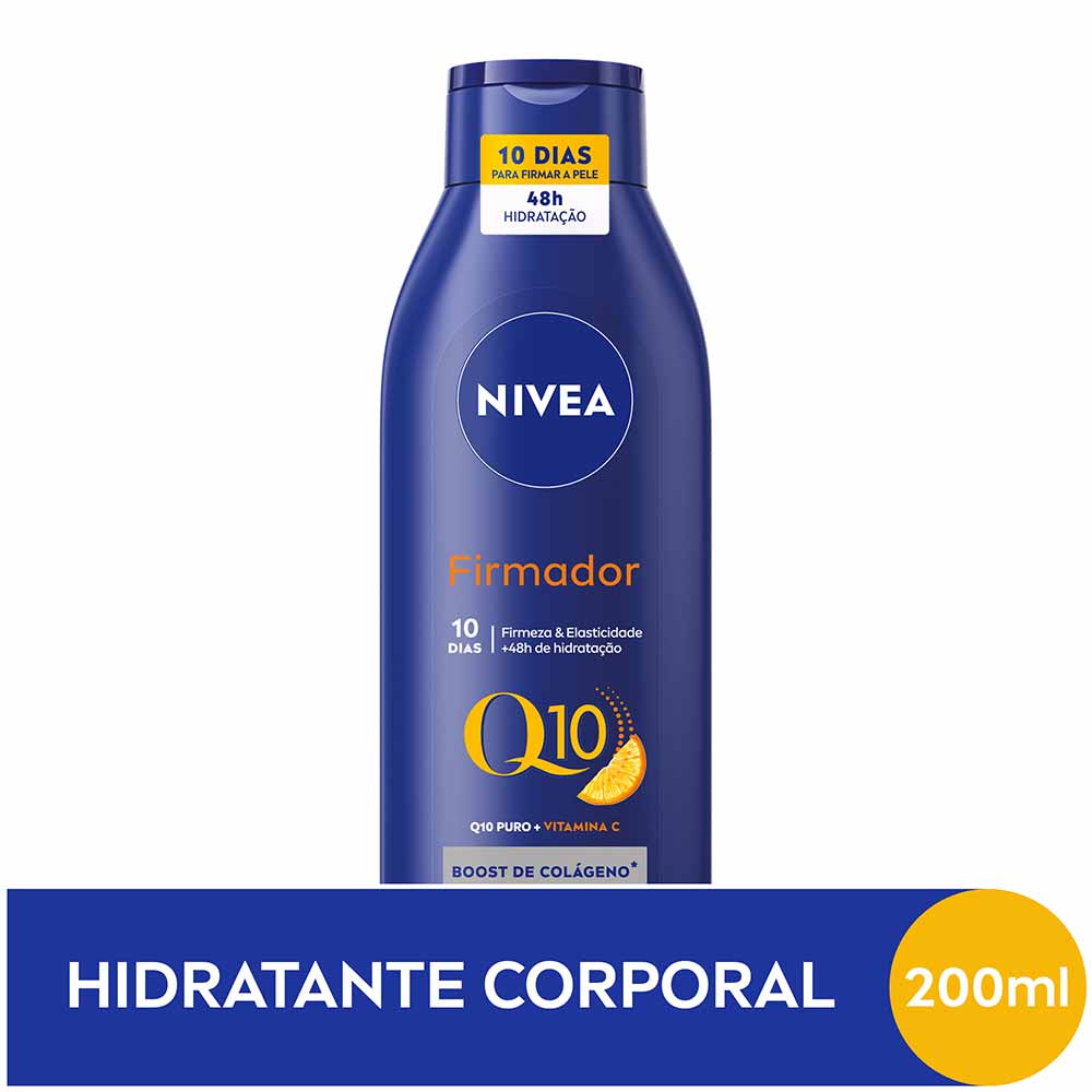 O que é? NIVEA Loção Hidratante Firmador Q10 + Vitamina C Pele Seca é uma loção hidratante que conta com a poderosa combinação de Q10 e Vitamina C em sua fórmula. Para que serve? Indicado especialmente para pele seca, este hidratante firmador previne a flacidez e melhora a elasticidade da pele em apenas 10 dias de uso. Sua textura leve e de rápida absorção permite uma hidratação profunda por até 48 horas. Os antioxidantes presentes na fórmula trabalham juntos para melhorar visivelmente a firmeza da pele. Dermatologicamente testado e com ingredientes naturais. NIVEA Loção Hidratante Firmador Q10 + Vitamina C Pele Seca é o cuidado diário que sua pele merece. Experimente e comprove os resultados incríveis! Benefícios e diferenciais: - Firma visivelmente a pele e melhora sua elasticidade em 10 dias - Previne a flacidez - Hidrata intensamente por 48 horas - Ingredientes cuidadosamente selecionados - Não contém ingredientes de origem animal - Dermatologicamente testado Sobre a Marca: Como uma das principais empresas no segmento de cuidados com a pele – com mais de 130 anos de experiência – nossos produtos sempre satisfazem as necessidades de nossos consumidores, que confiam muito na NIVEA.