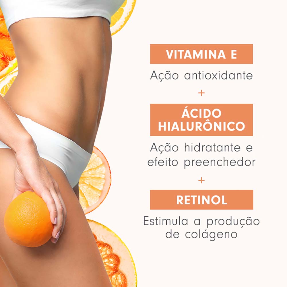 Além disso, contém Ácido Hialurônico, Retinol e Vitamina E que, associados, promovem o estímulo da produção de Colágeno, o aumento da renovação celular e da hidratação da pele. Com ação antioxidante, reduz rugas, linhas finas e intensifica a firmeza da pele.