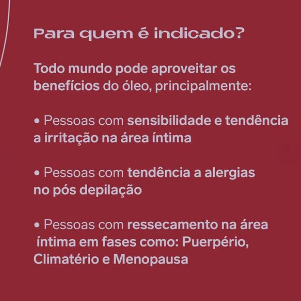 O Óleo Calmante Hidratante Feel é um óleo multifuncional que vai acalmar, hidratar a região íntima, eliminando desconfortos como vermelhidão, coceiras e inflamações no pós sexo e depilação.