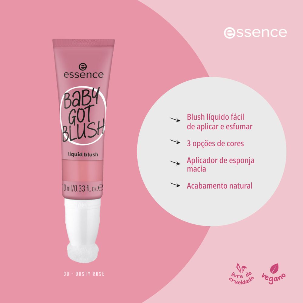 O Blush Líquido Baby Got Blush da Essence é super fácil de aplicar, graças ao seu aplicador de esponja macio e prático.