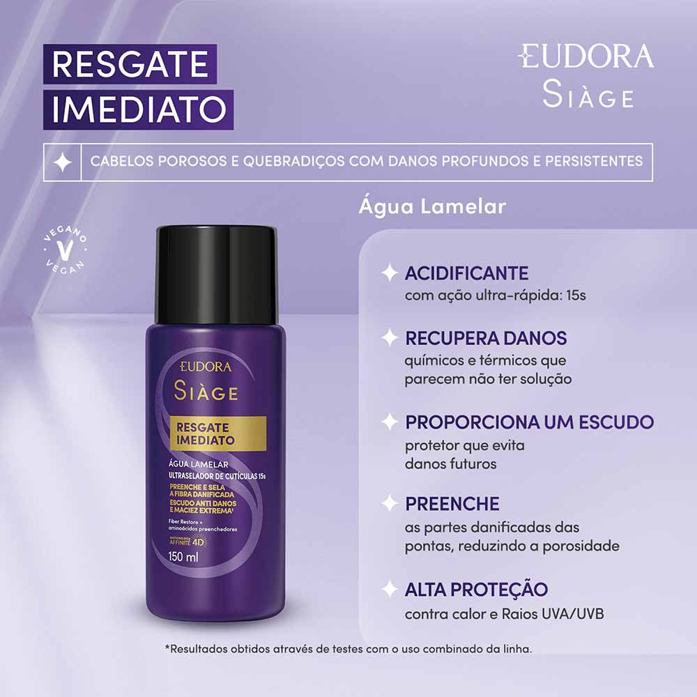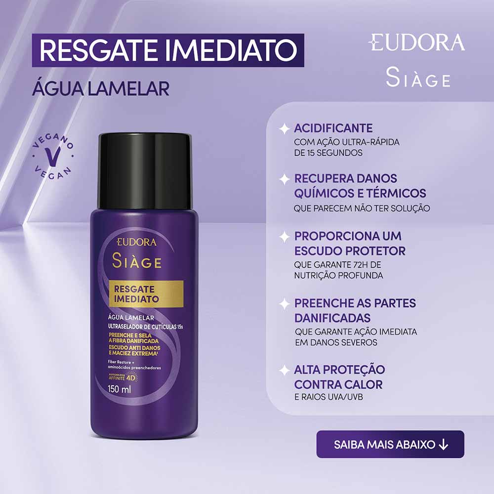O Eudora Siage Resgate Imediato Água Lamelar Acidificante é uma inovação no tratamento capilar, perfeito para quem busca uma solução eficaz e rápida para cabelos com danos difíceis de resolver.