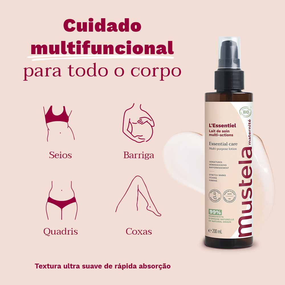 A Loção Corporal Multifuncional Mustela Maternité L'Essentiel é um produto revolucionário, desenvolvido especialmente para atender às necessidades únicas das gestantes durante a gravidez e no pós-parto.