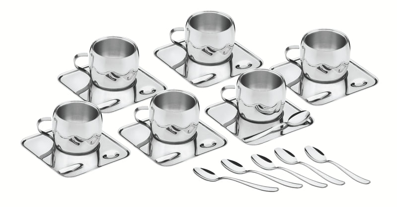 Kit para Café Tramontina Inox Xícara Pires Quadrado Colher 18 Peças