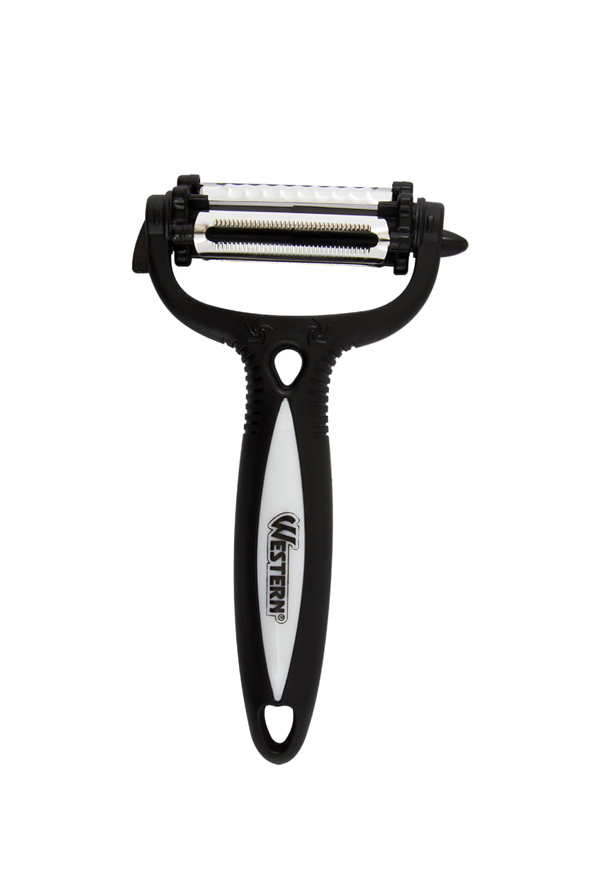 DESCASCADOR 3 EM 1 - Dimensões da Peça: 15 x 8,8 x 2cm - Dimensões da Embalagem: 12 x 3 x 21,7cm - Quantidade Inner: 120 Peças - Dimensões Inner: 62 x 45,5 x 23cm - Quantidade Master: 240 Peças - Dimensões Master: 64 x 48,5 x 49cm - Material: Aço inoxidável e PP - Cor: Preto Tipo de Embalagem: Blister - Marca: Western Home - Origem: China - Contém: 1 unidade - Com 3 variações de lâmina. - Instruções: - Sempre guarde o descascador seco. - Lave com detergente neutro e esponja macia. Enxague bem e seque completamente em seguida para evitar manchas. - Não utilize palha de aço, para não riscar o produto. - Cuidados: - Cuidado ao manusear produtos cortante. - Guarda em local seguro. - Guarde estas instruções para futuras consultas. - Manter fora do alcance das crianças.