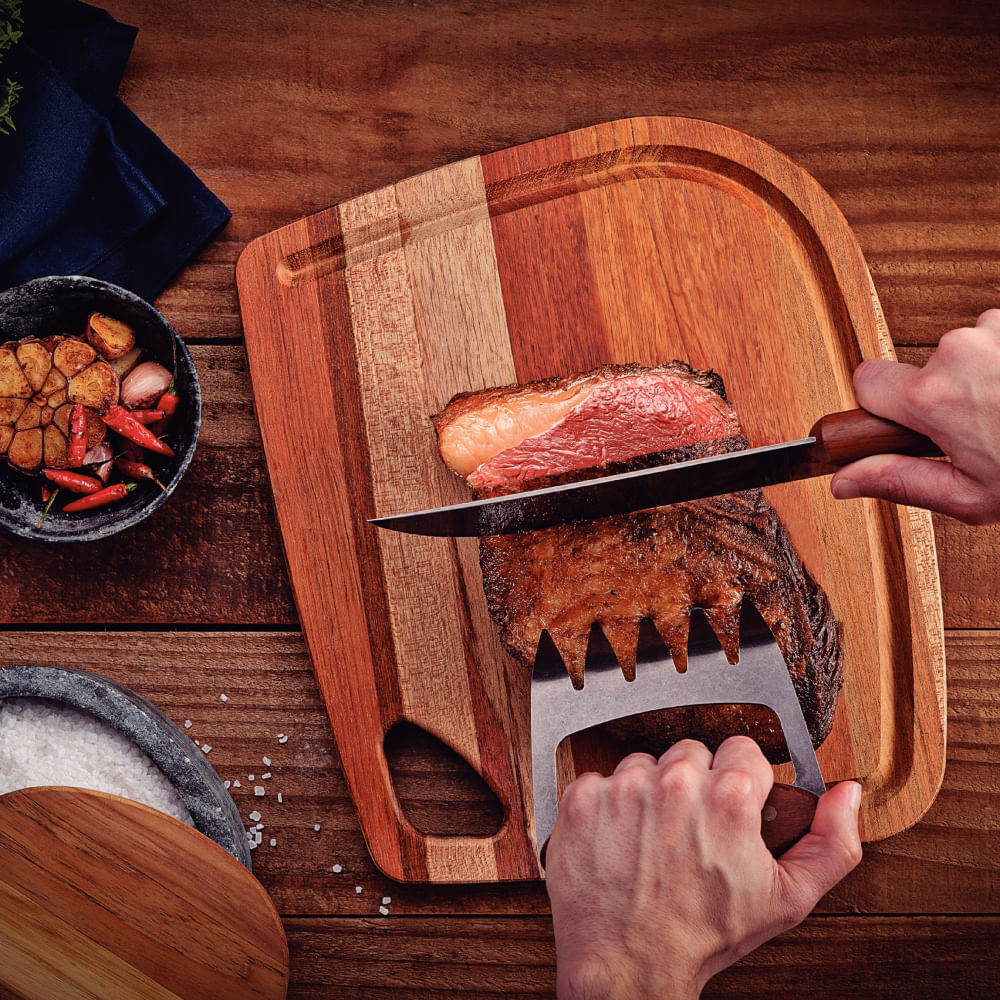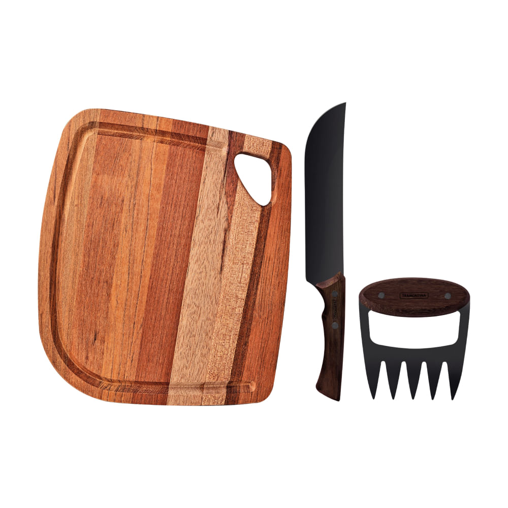 Desenvolvido pela Tramontina, este jogo é perfeito para entusiastas do churrasco. As lâminas de aço inox escurecido oferecem corte preciso e visual distinto, enquanto os cabos de madeira proporcionam manuseio confortável. Acompanha uma prática tábua, completando o kit essencial.