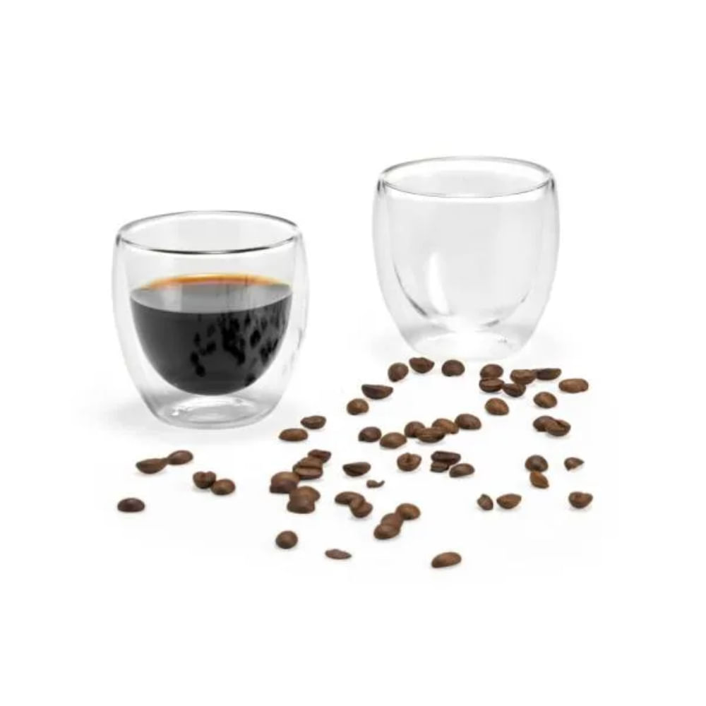 Composto por duas peças, cada copo possui 100ml de capacidade e é fabricado em vidro de alta qualidade. A tecnologia de parede dupla cria um isolamento térmico eficaz, perfeito para desfrutar de cafés, chás ou outras bebidas, quentes ou frias, sem que a temperatura externa afete o conteúdo ou que suas mãos sintam o calor ou frio excessivo.