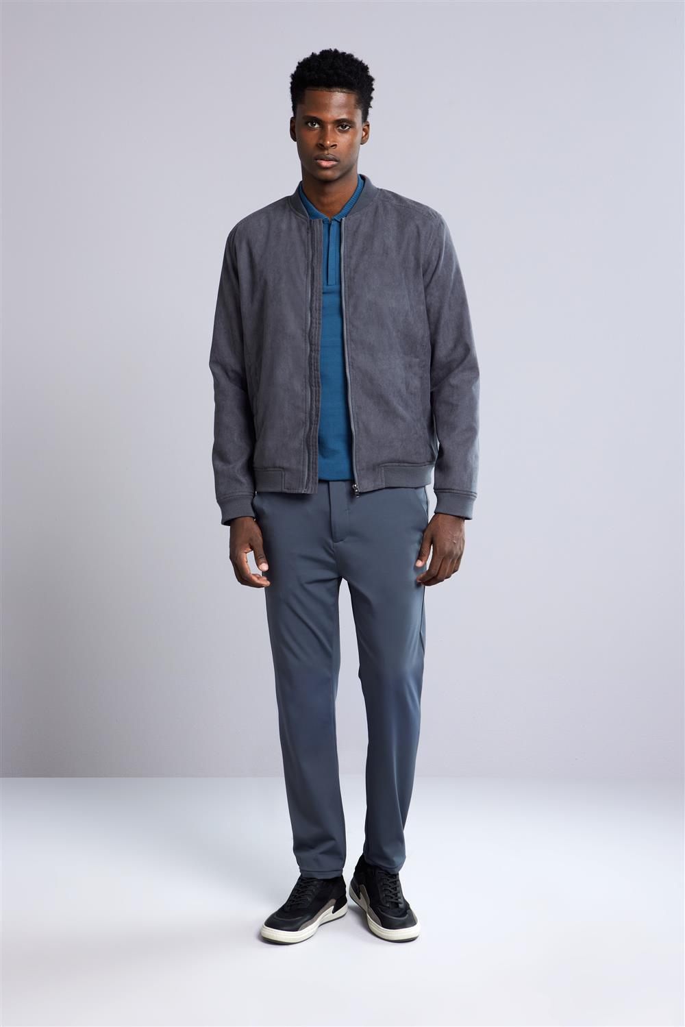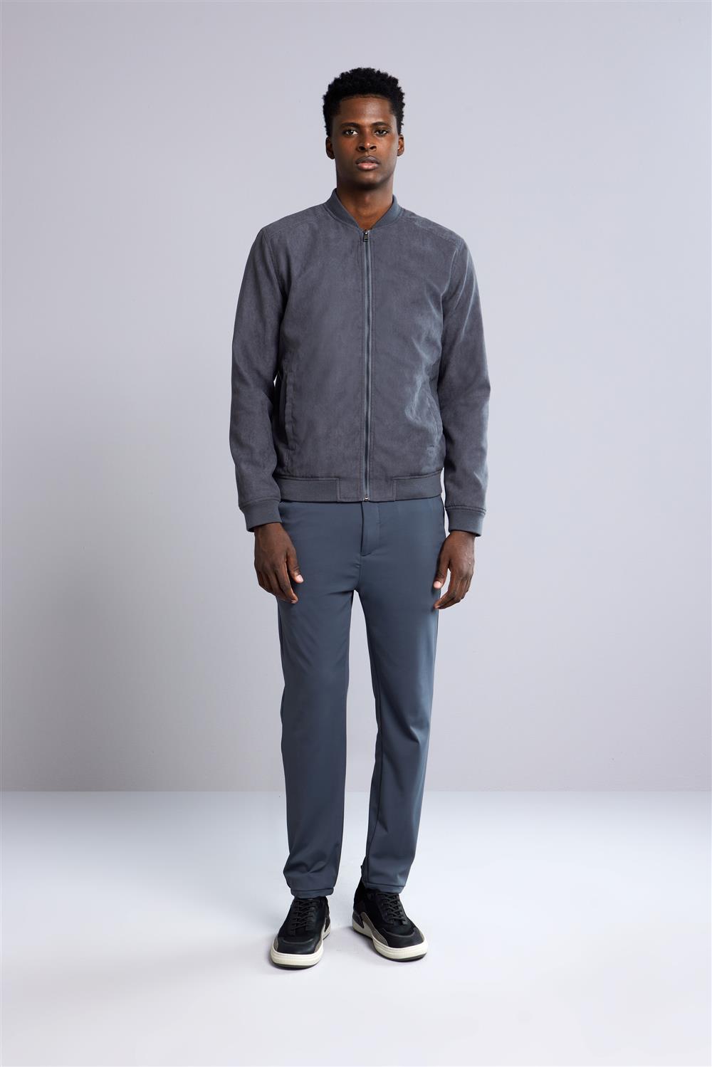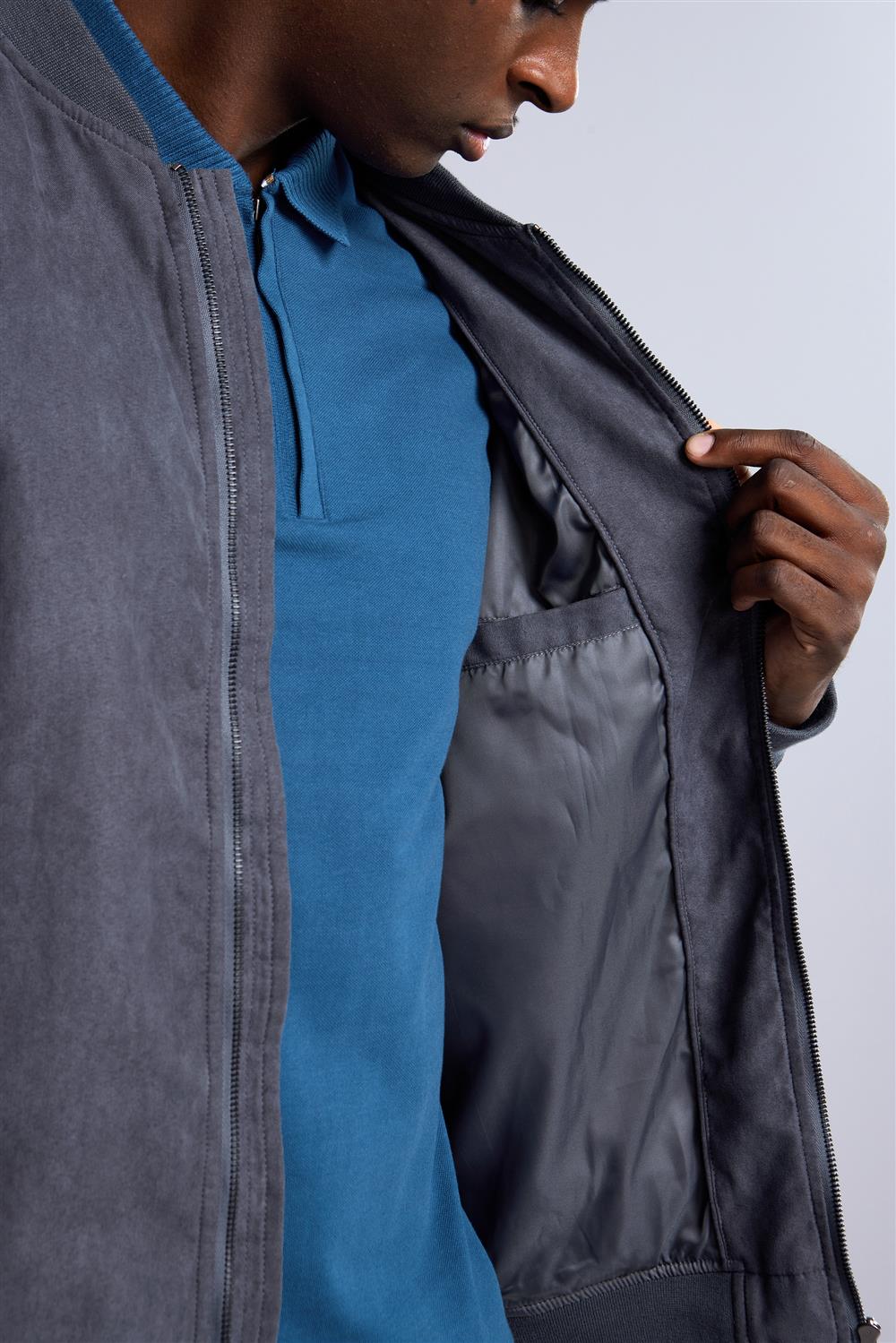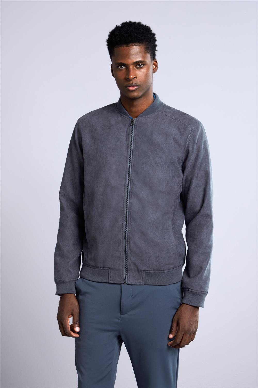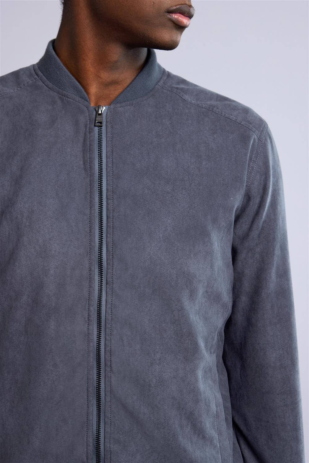 Jaqueta Bomber com Zíper Suede - Cinza Chumbo
