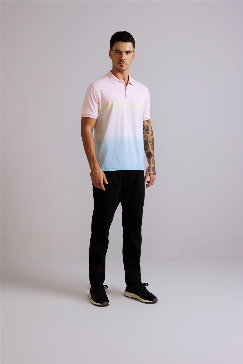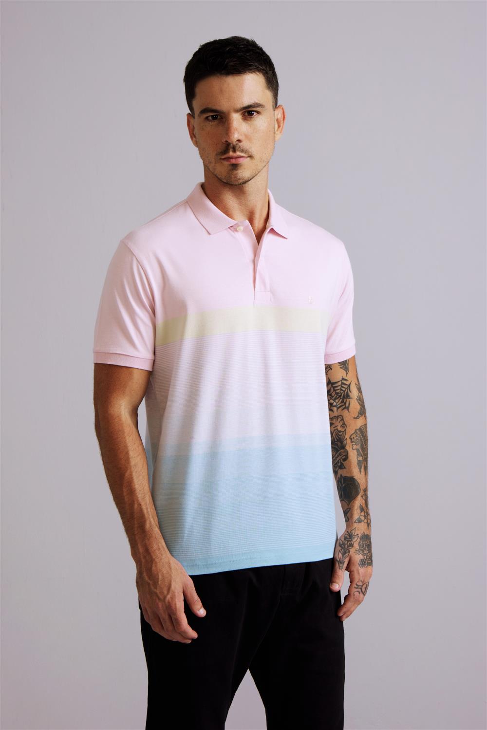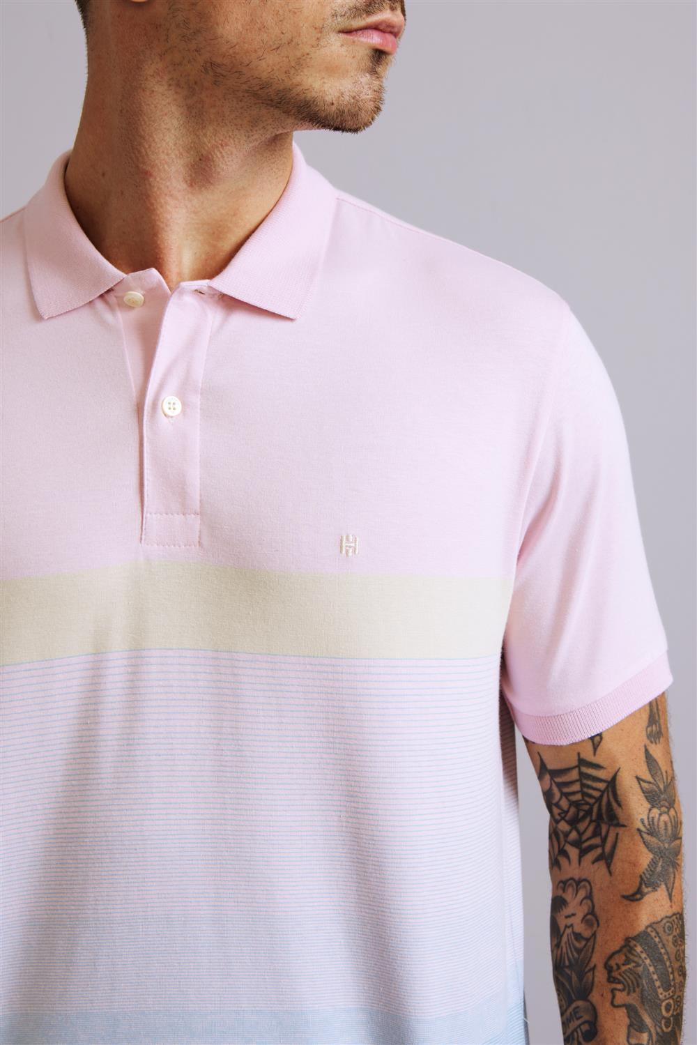 Camisa Polo Comfort Malha - Rosa / Azul Céu
