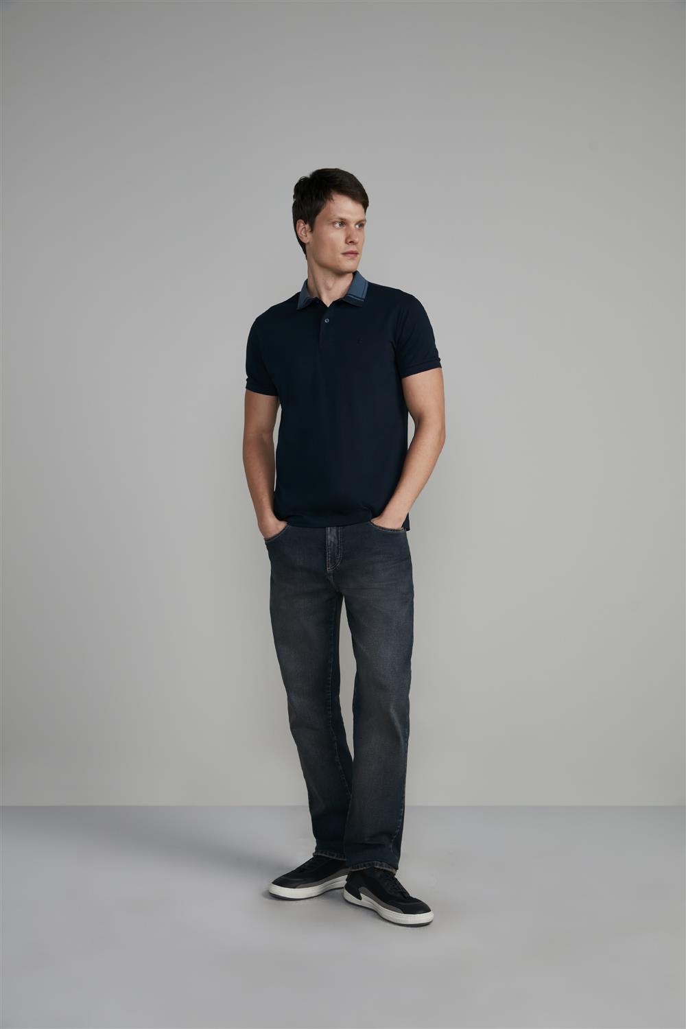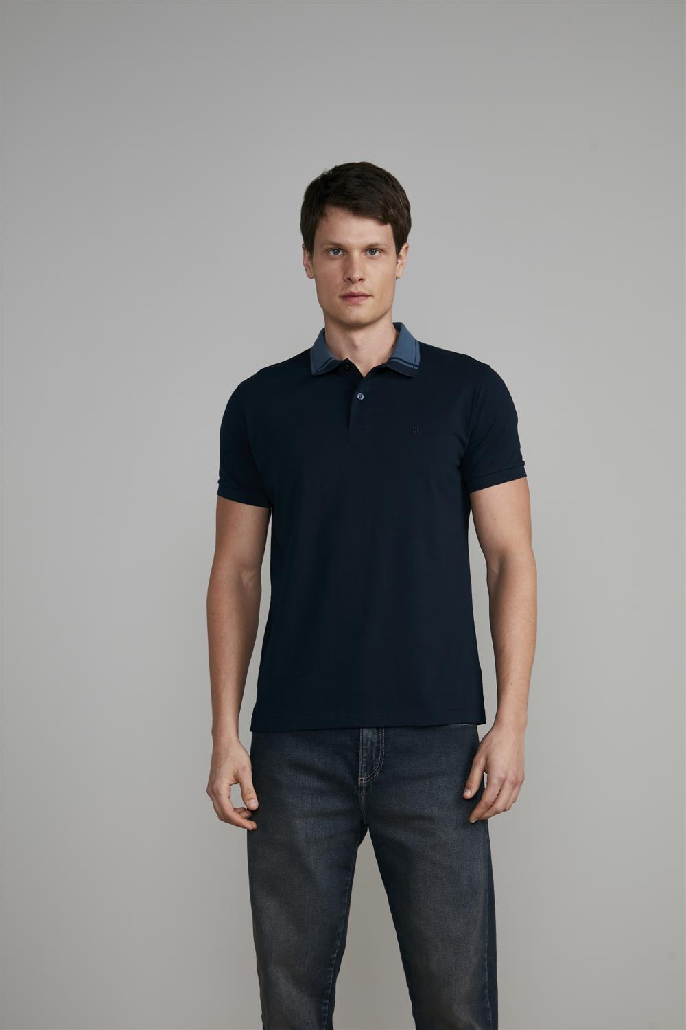 Camisa Polo Malha Slim Fit - Azul Marinho