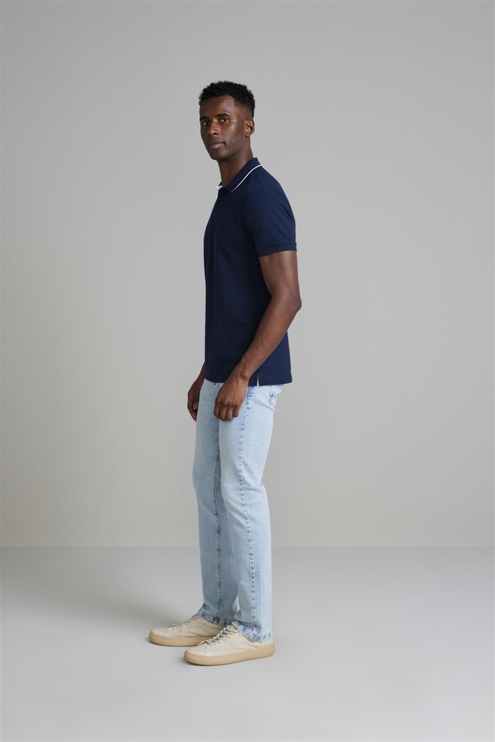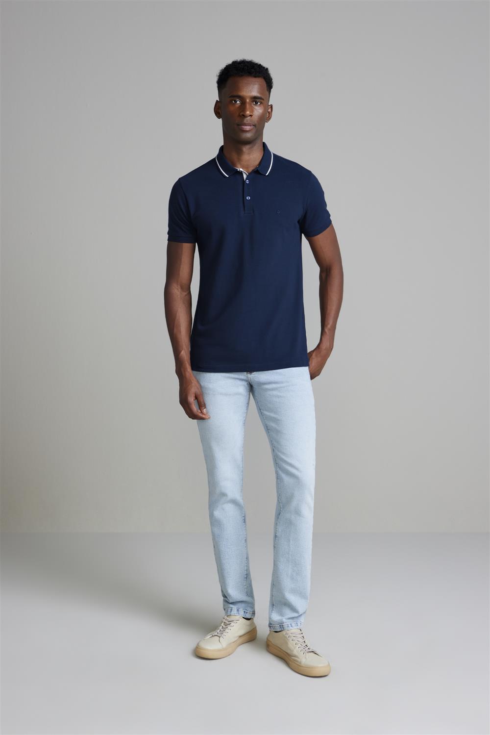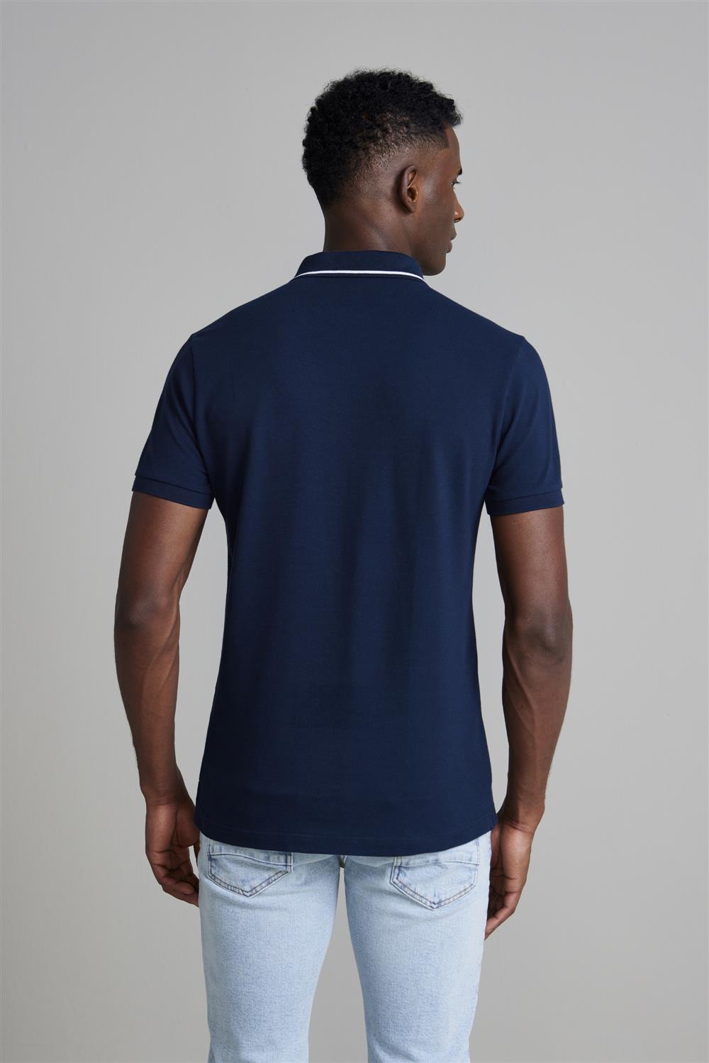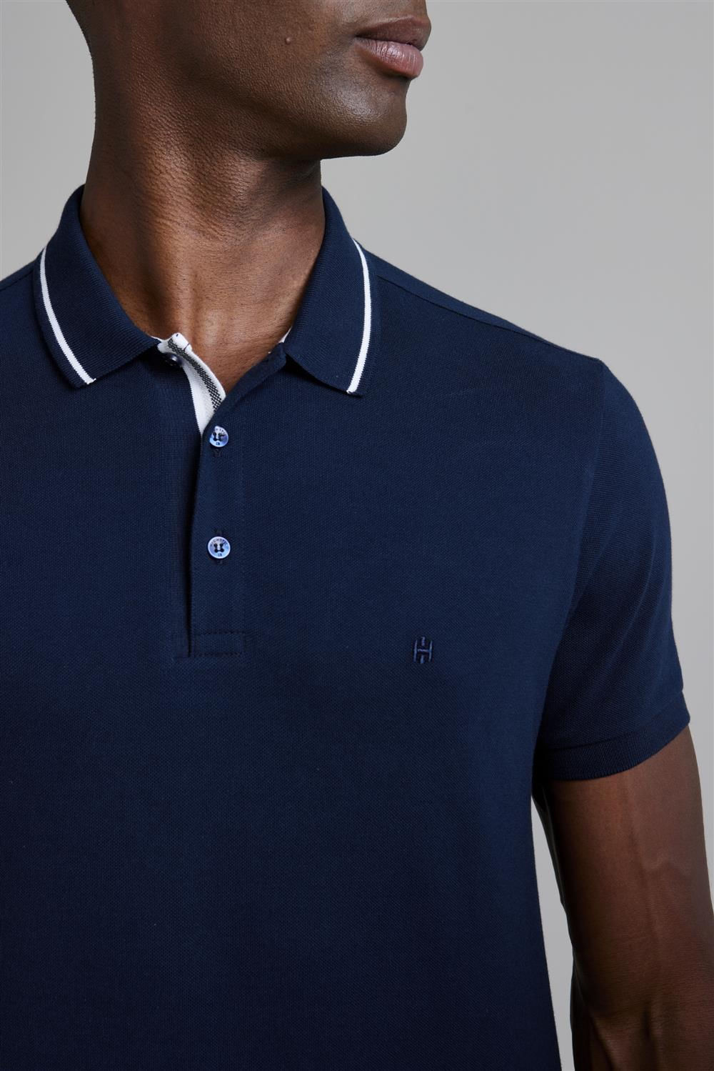 Camisa Polo Piquet Slim Fit - Azul Marinho