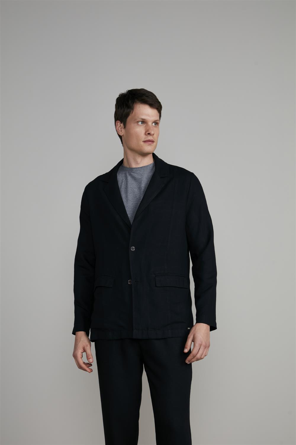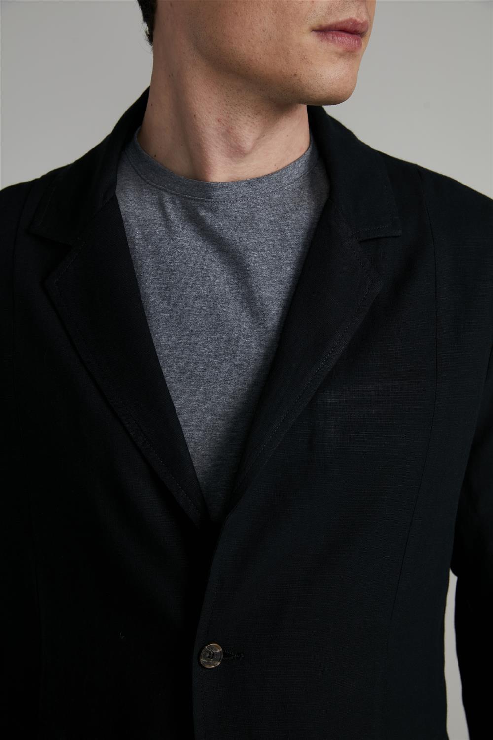 Blazer Linen Blend Slim Fit - Preto