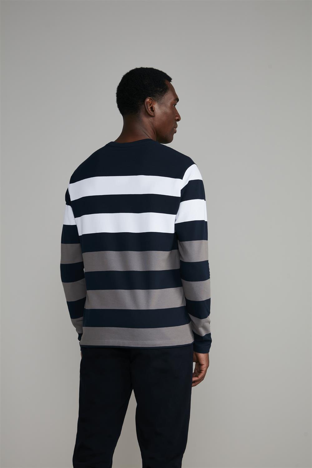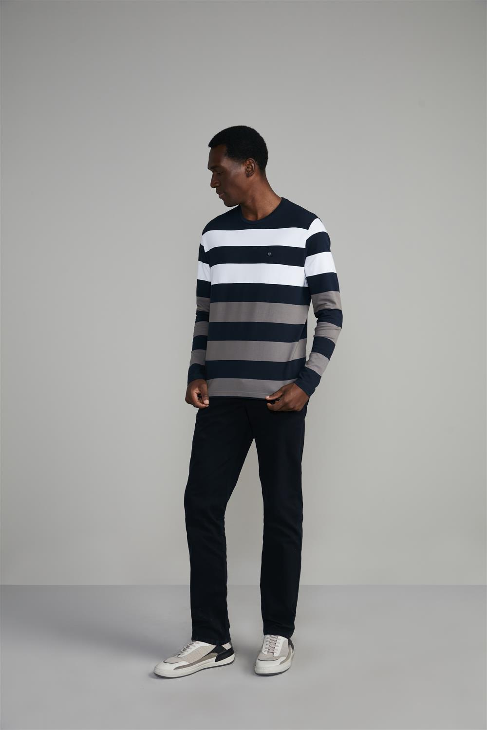 Camiseta Manga Longa Piquet Comfort - Azul Marinho / Cinza Concreto