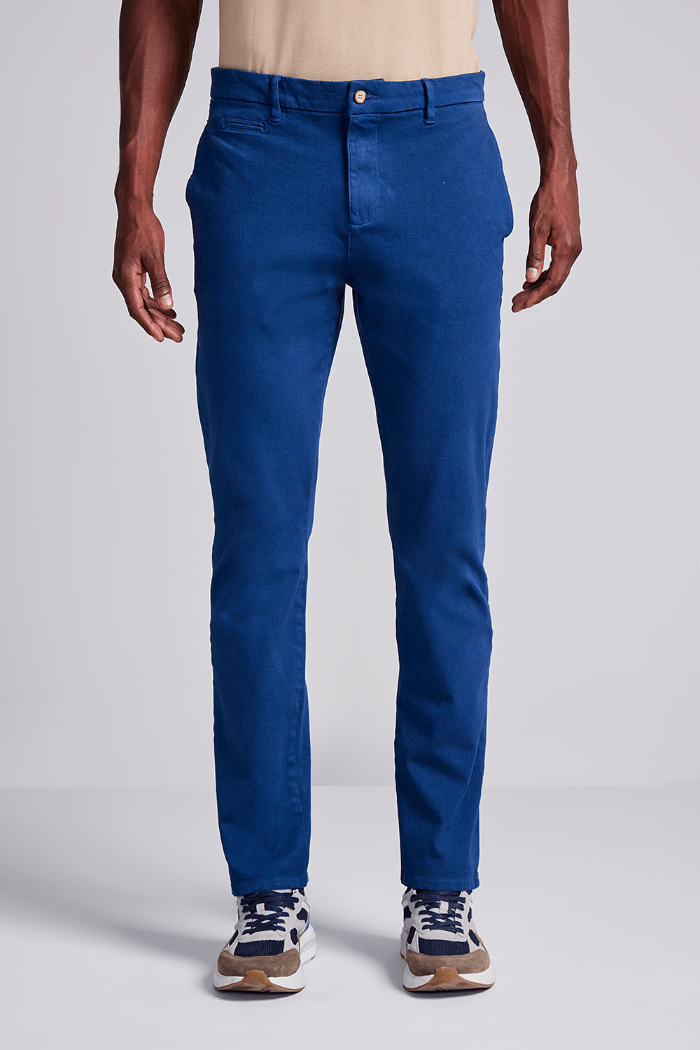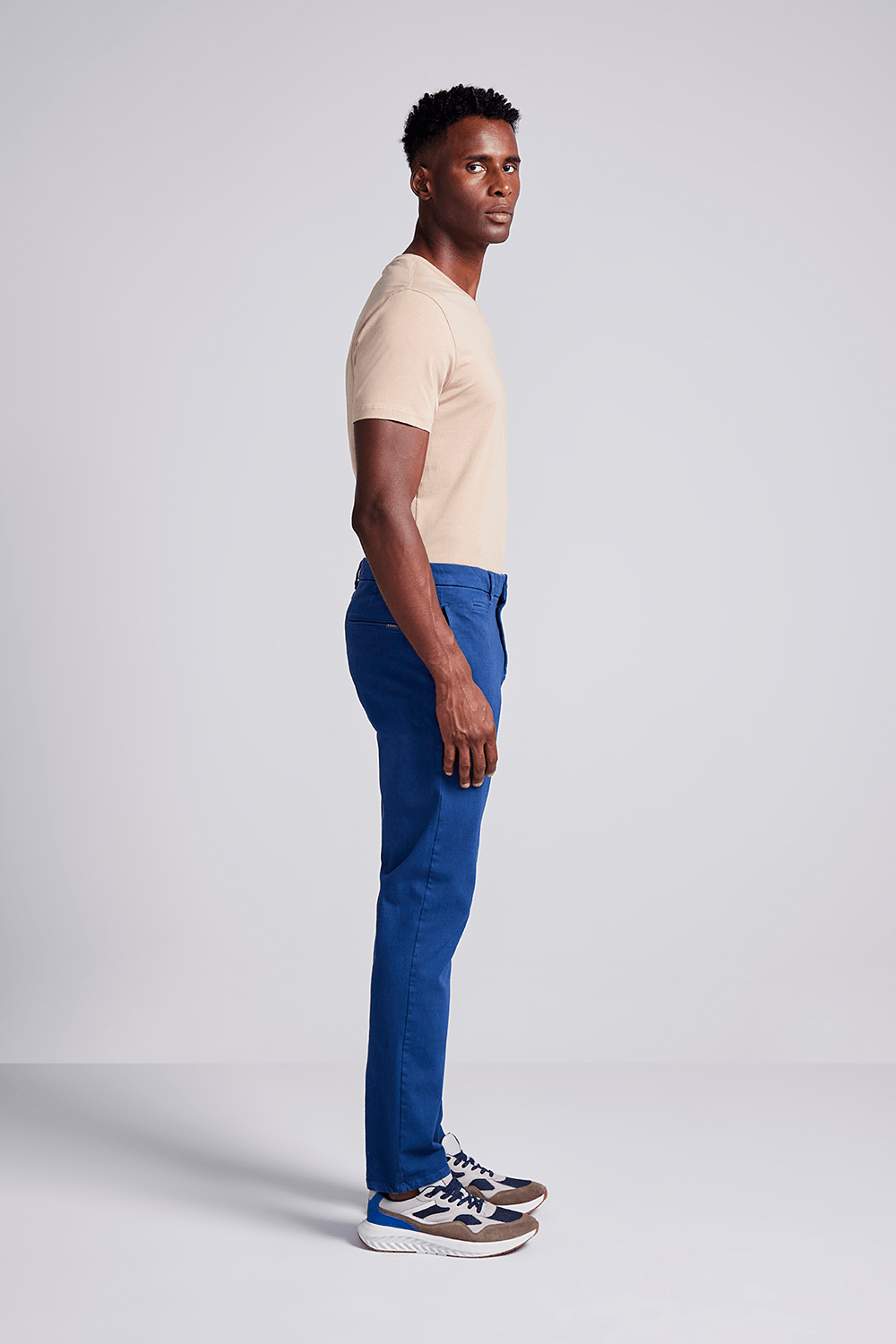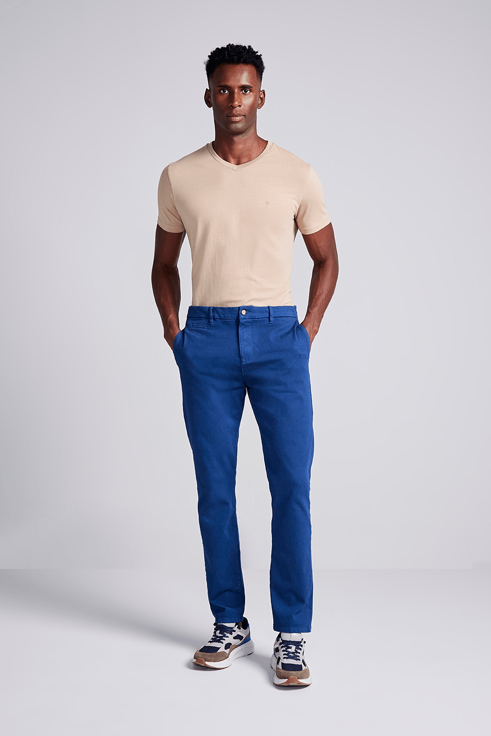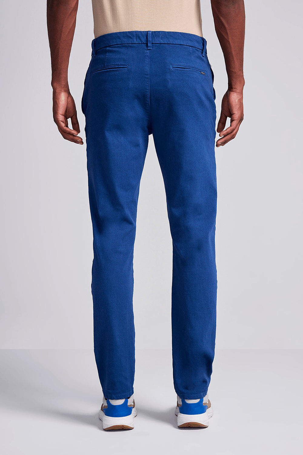 Confeccionado com a modelagem Slim Fit, a peça apresenta cintura média, quadril e barra levemente ajustados, sendo assim, uma modelagem mais anatômica.