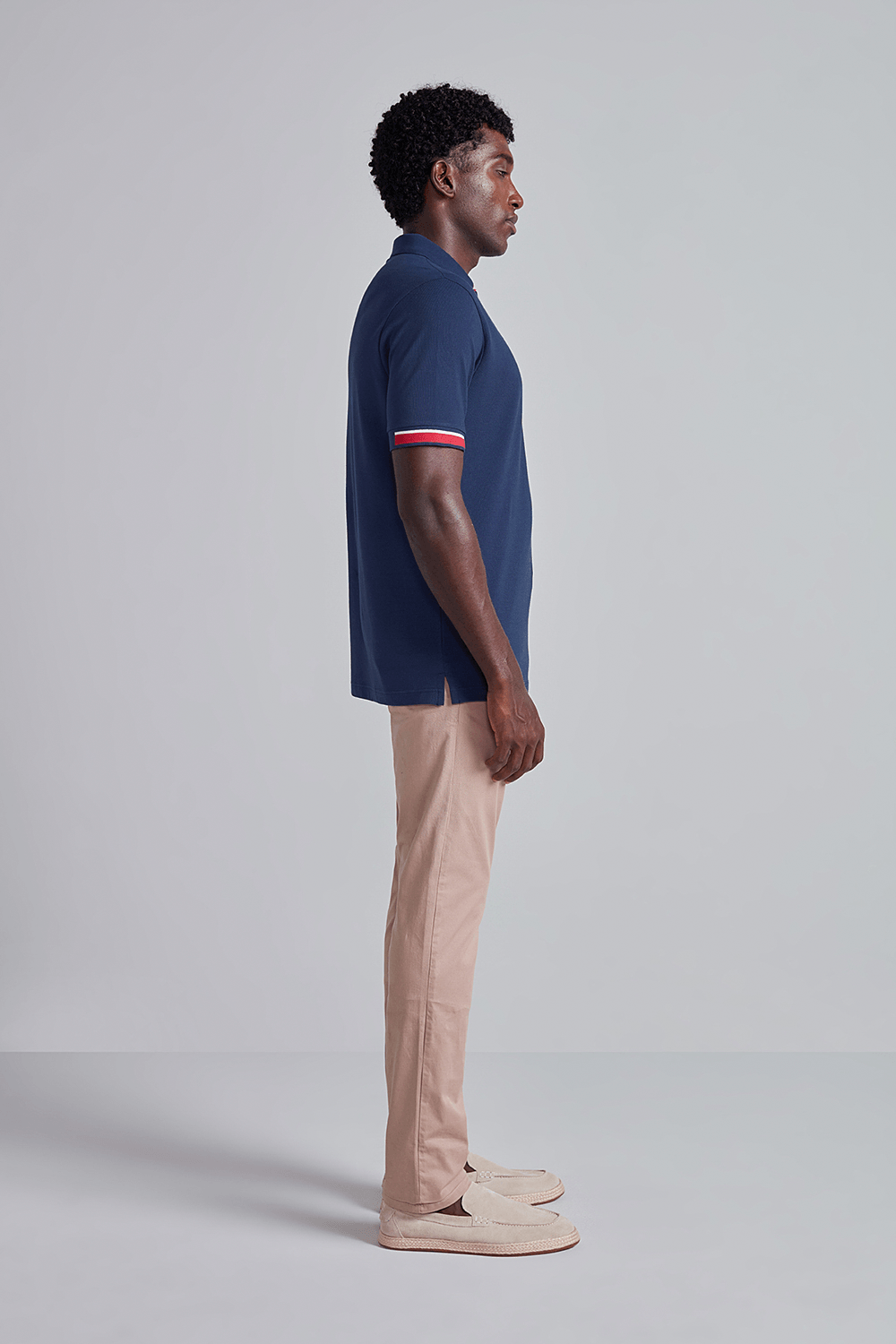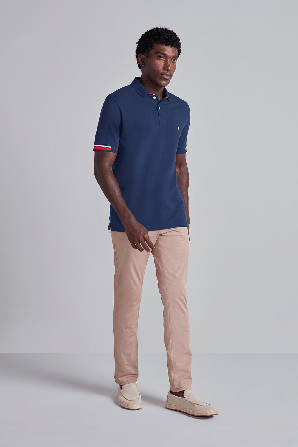 A Camisa Polo Piquet Comfort é confeccionada em 98% Algodão e 2% Elastano e é confeccionada em Piquet, sua estrutura possui micro furos que deixam a pele respirar melhor. Essa união de materiais proporciona ao tecido um ótimo caimento e leveza, além do toque macio, o tecido se destaca por seu conforto e durabilidade.