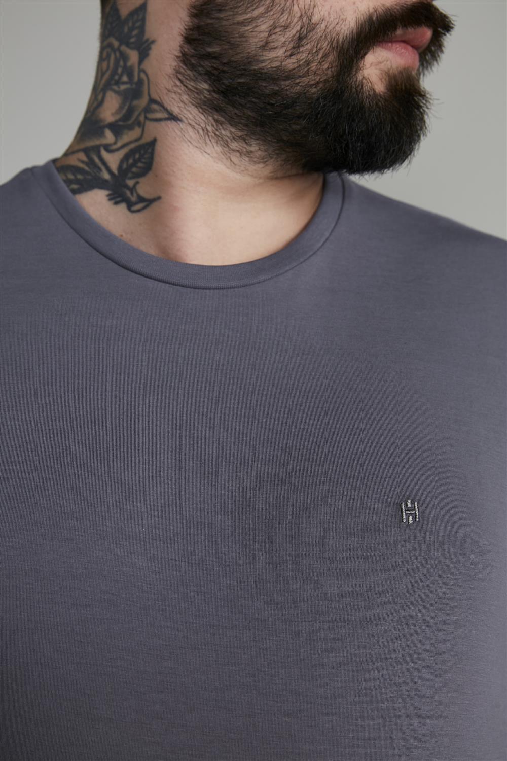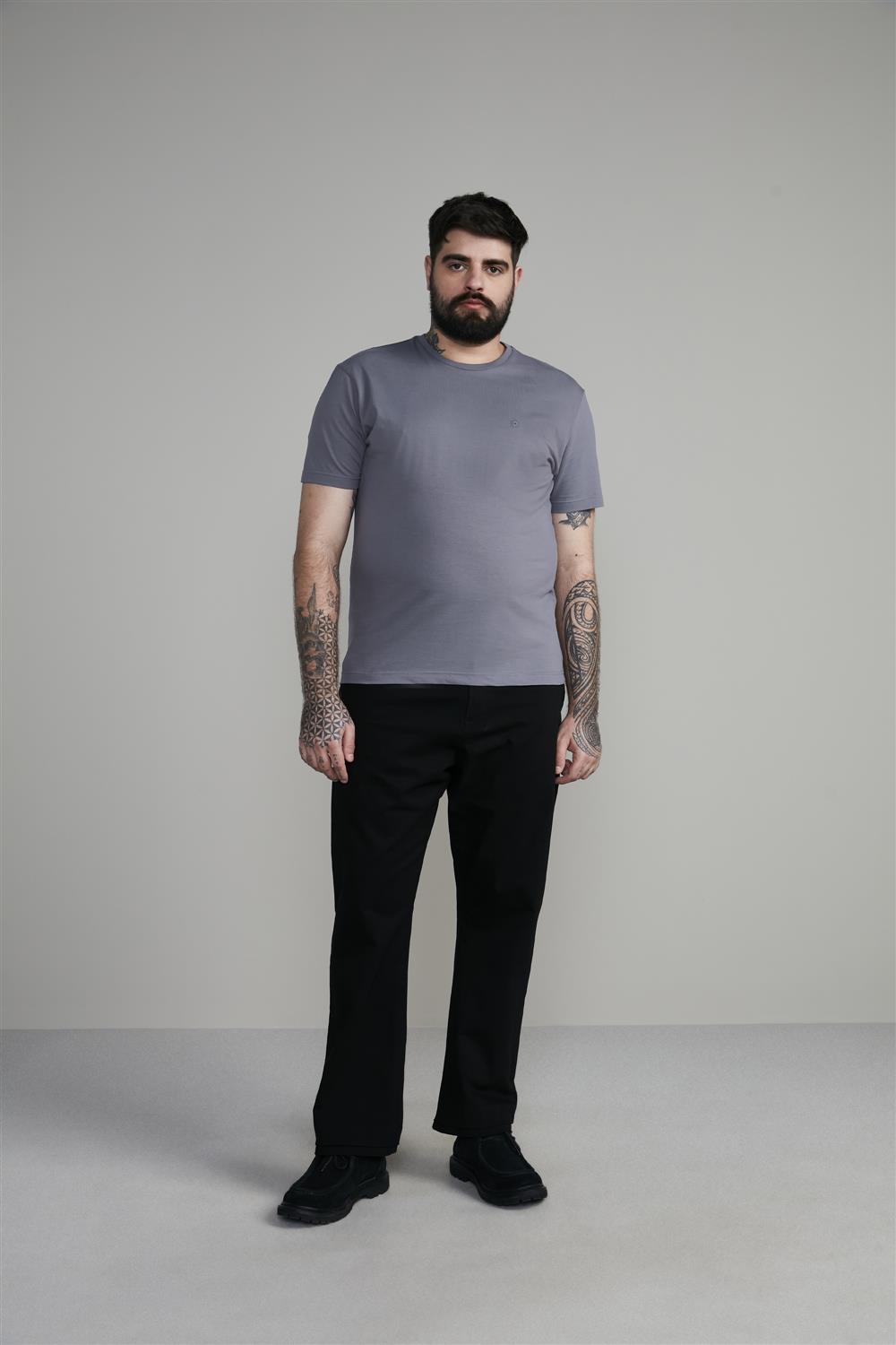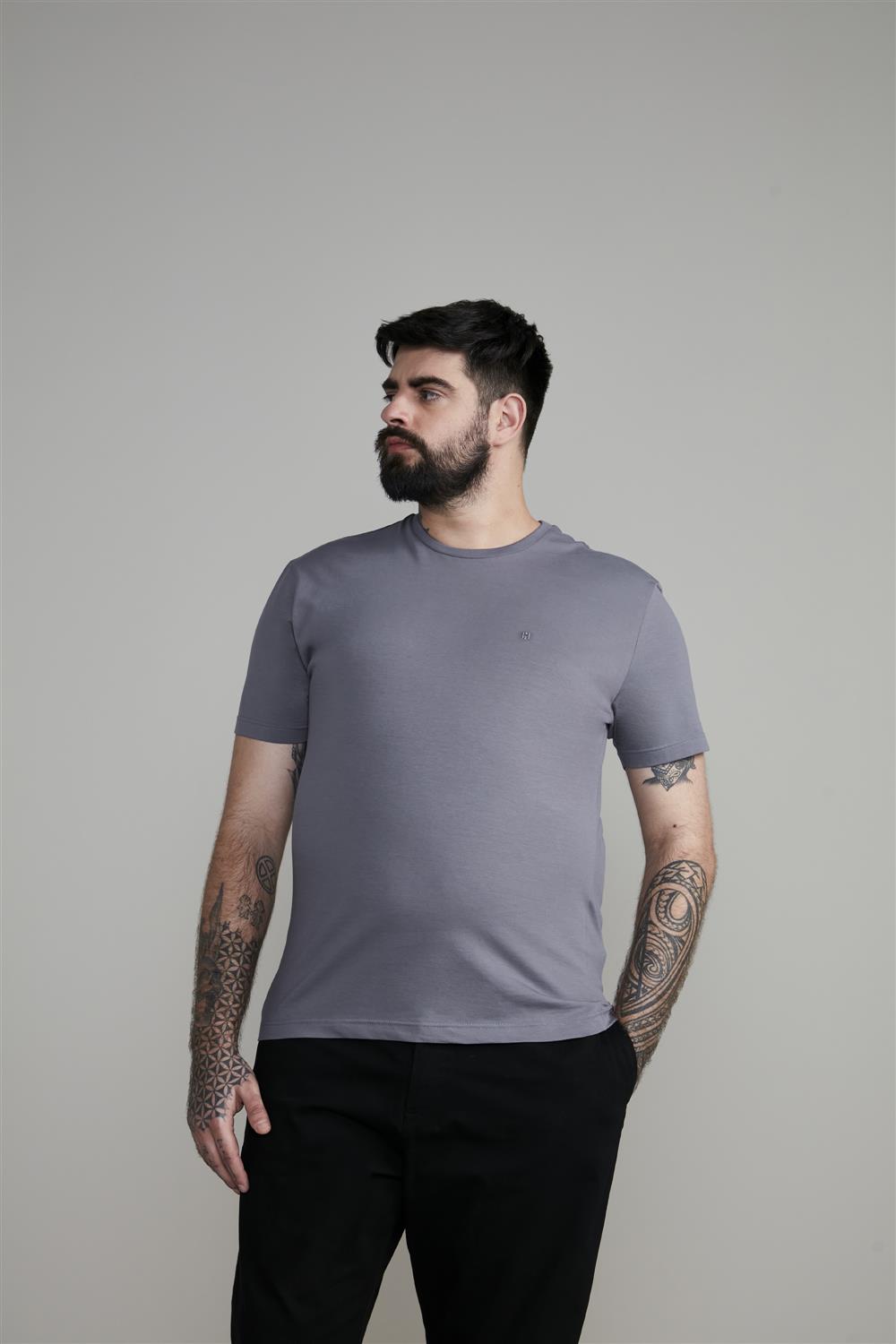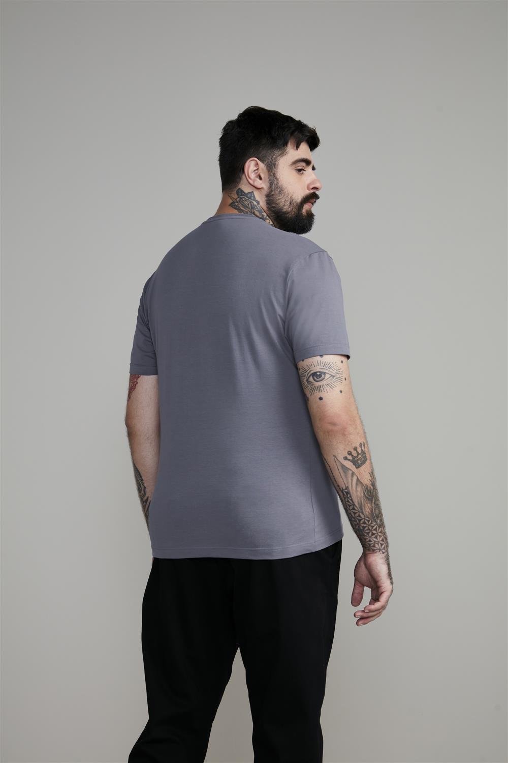 Camiseta Manga Curta Malha Básica Slim Fit - Cinza Escuro