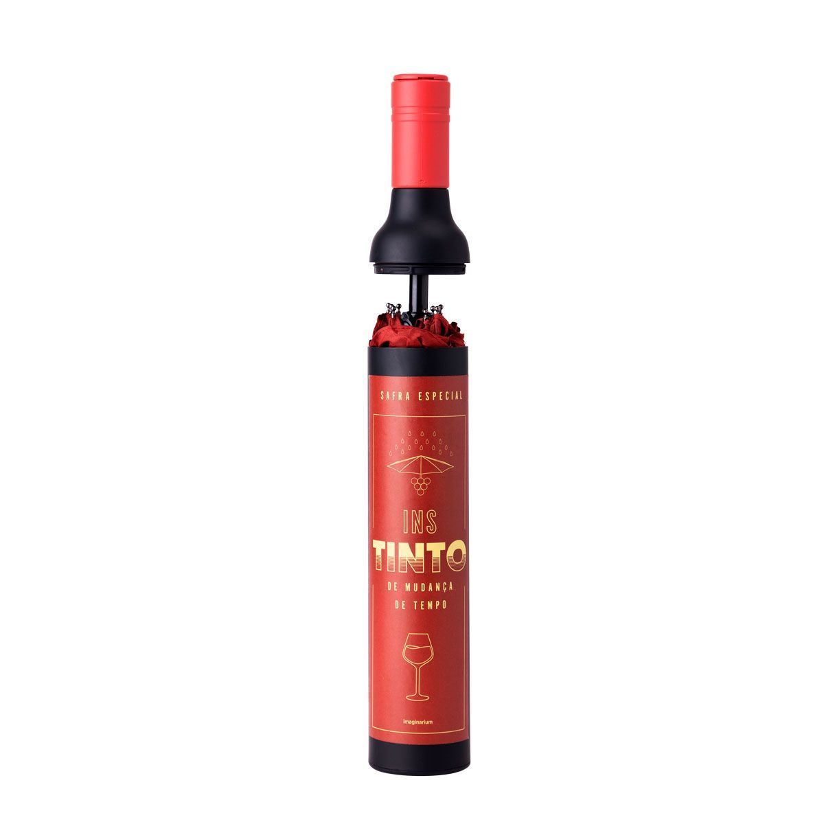 Apresentando um design que imita uma garrafa de vinho e contando com 1 guarda-chuva e 1 case, sem sombra de dúvidas, ele vai fazer você se sentir como um verdadeiro expert em vinhos, quer dizer, como um expert em previsão do tempo (pelo menos durante os seus rolês)!