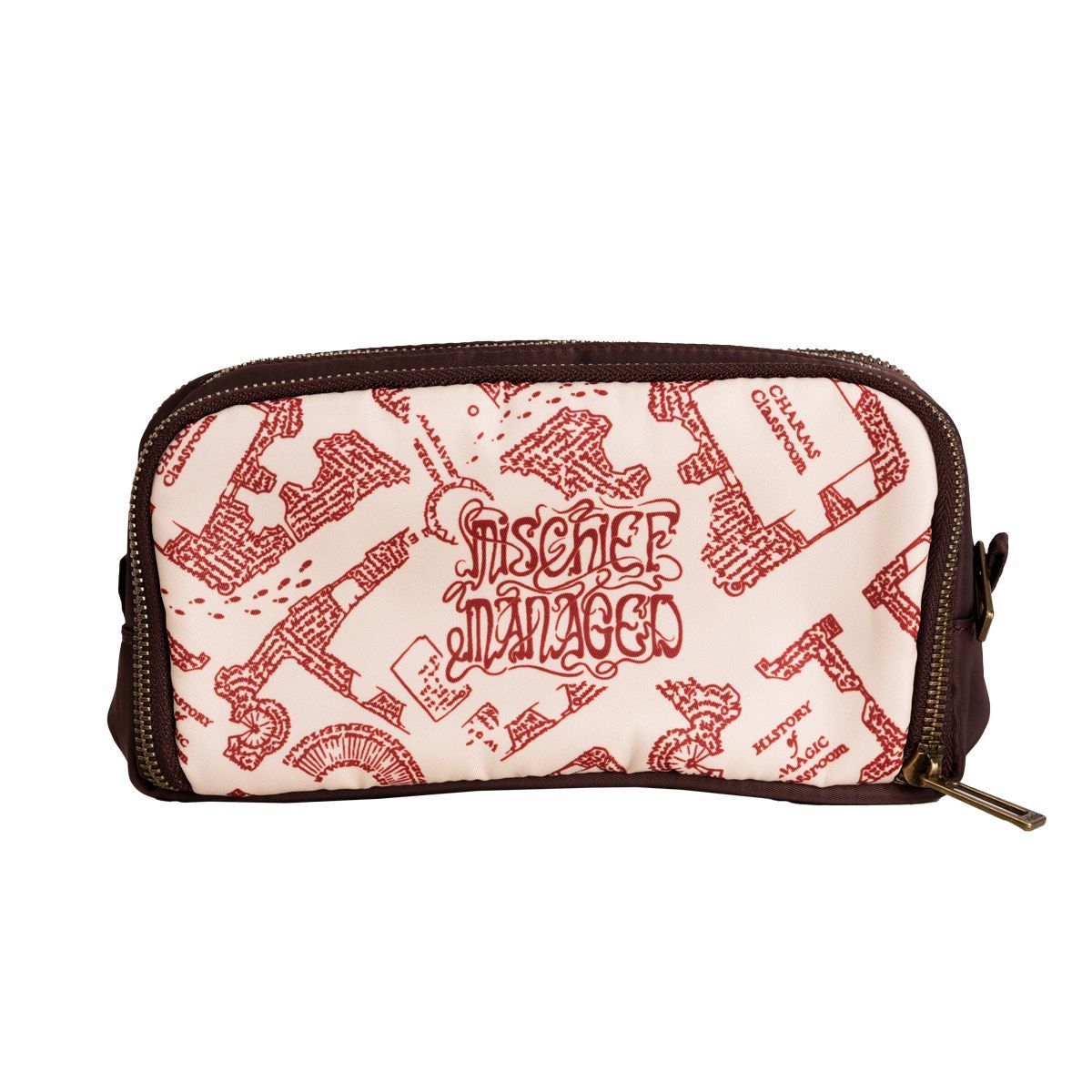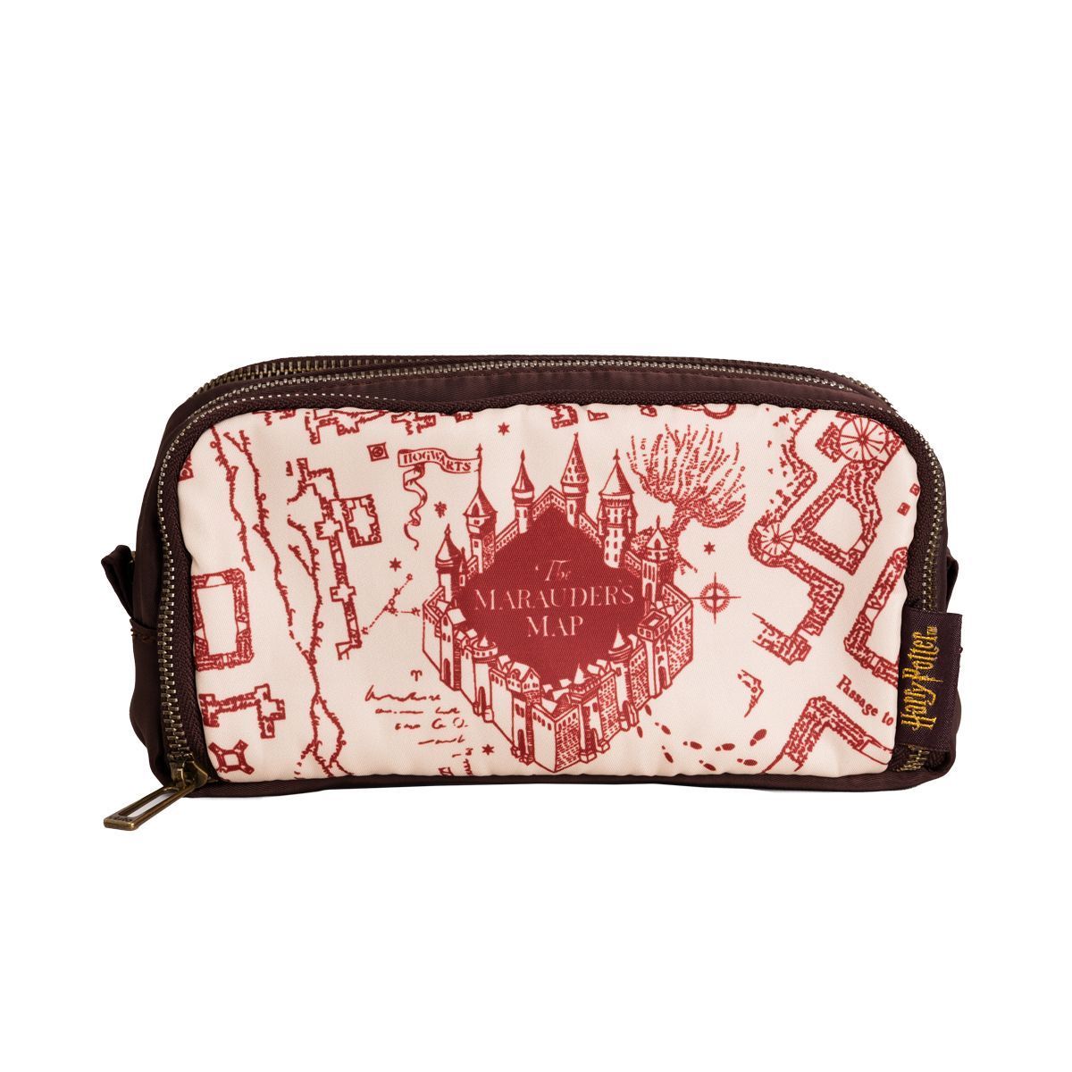 Apostando em uma estampa que reproduz o emblemático "Mapa do Maroto", artefato mágico da saga Harry Potter que revela todos os cômodos e passagens secretas de Hogwarts, esse estojo conta com:
