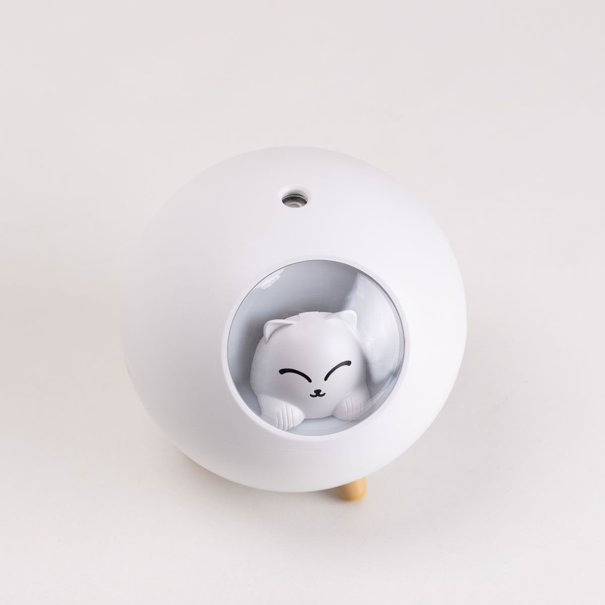 Contando com um design pra lá de criativo, esse umidificador de ar tem um formato arredondado, trazendo um gatinho que pode ser visto em seu interior através de sua janela de plástico transparente.
