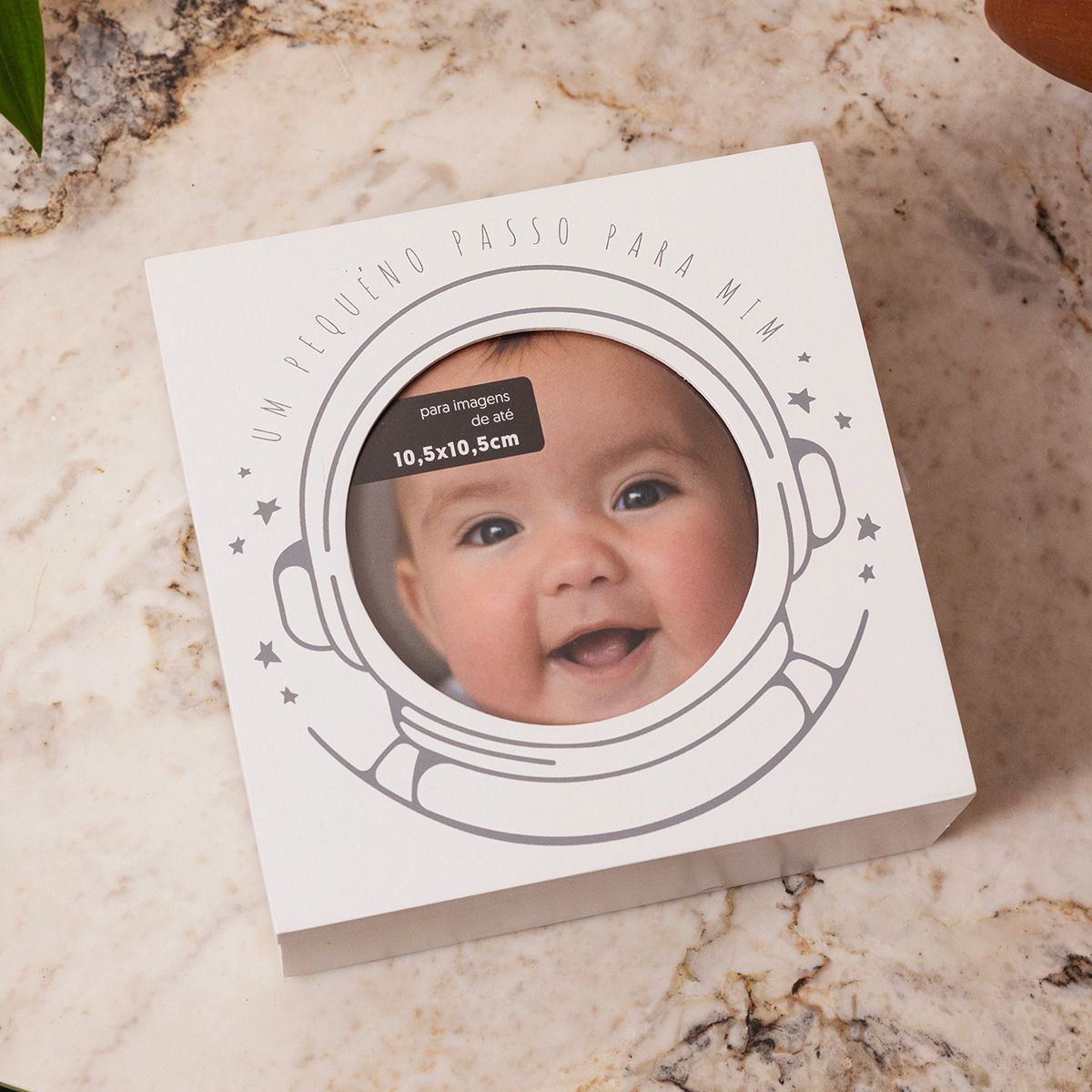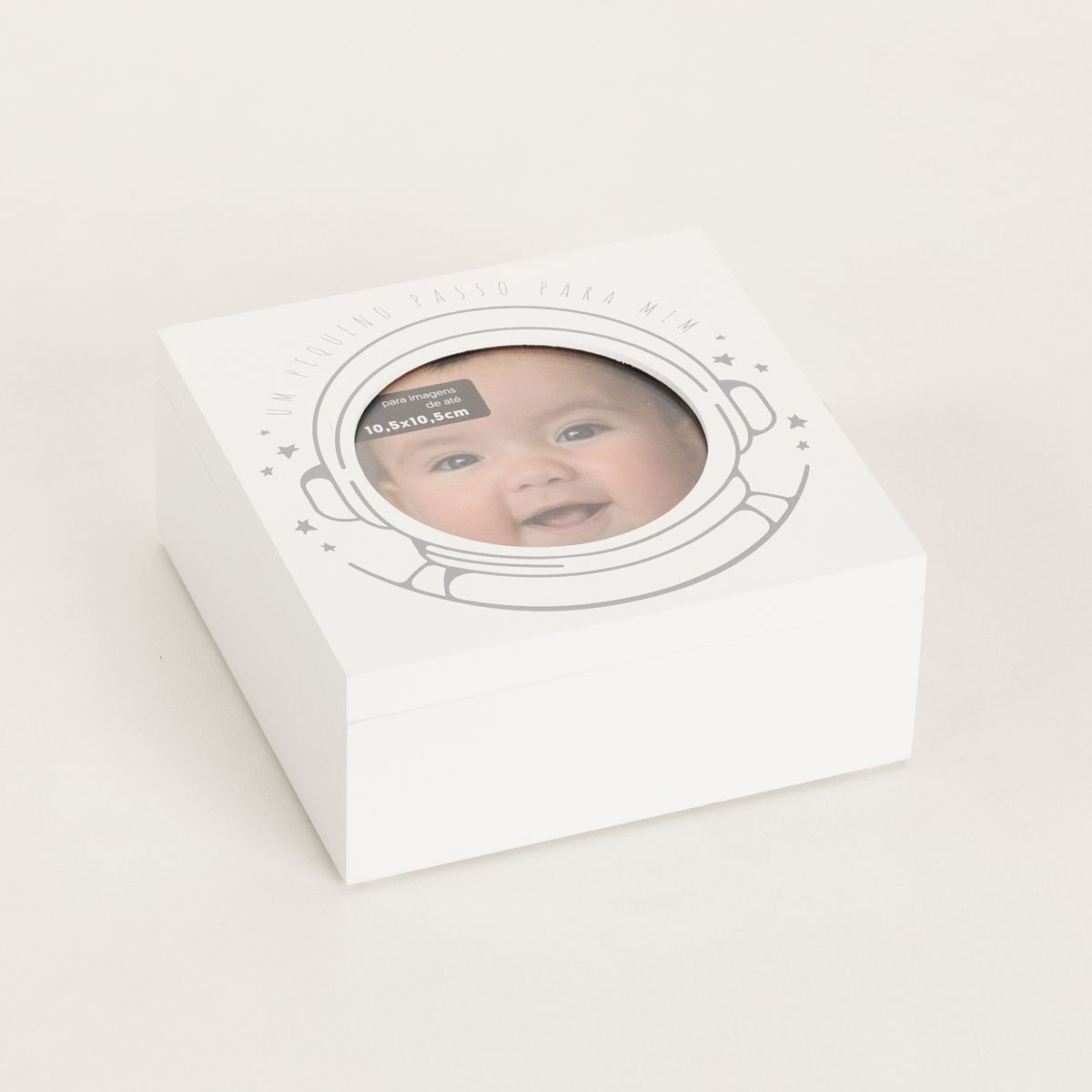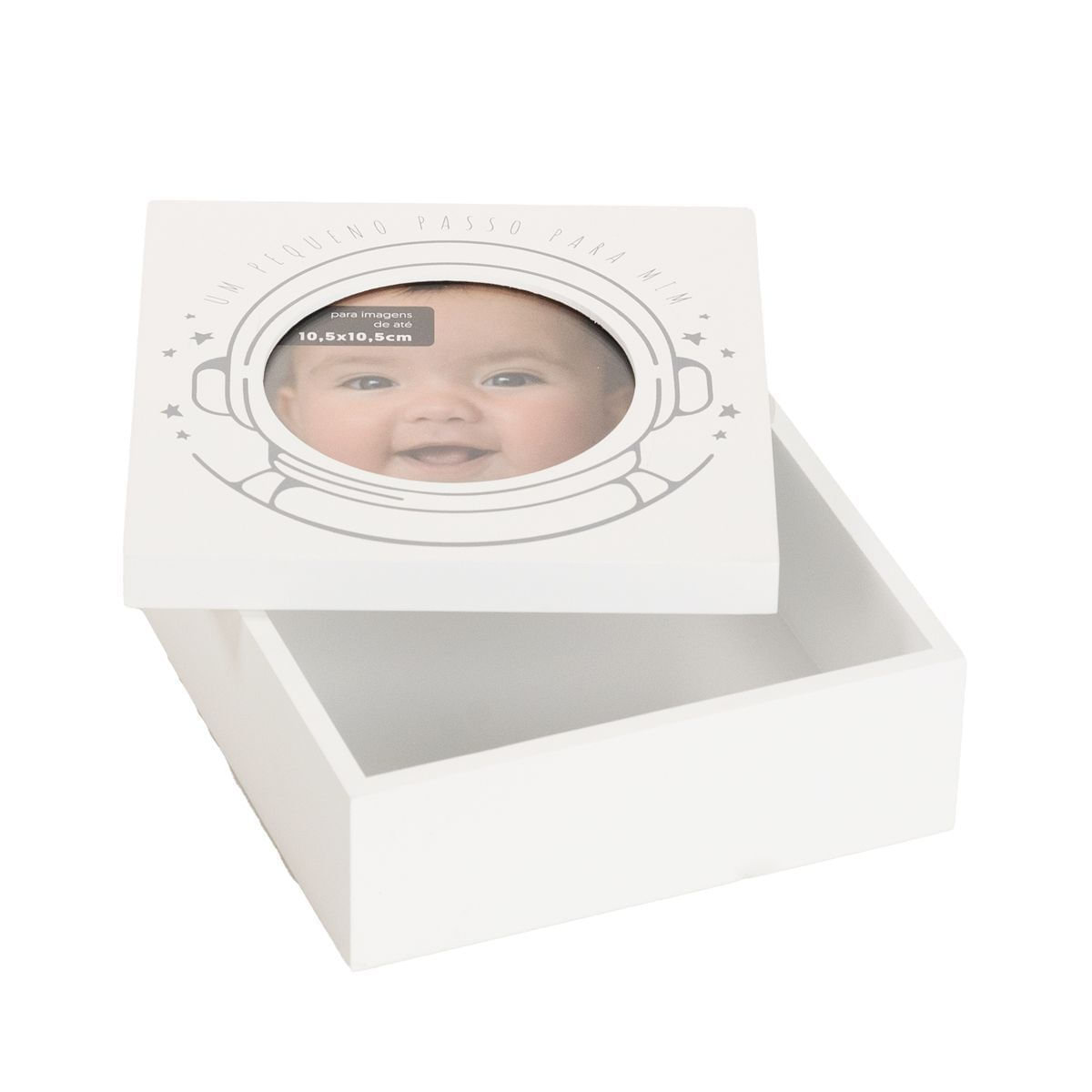 Comportando 1 foto de até 10,5 cm x 10,5 cm e contando com um espaço para você registrar o pezinho do seu bebê na Lua, quer dizer, na argila, essa belezinha é muito mais do que um porta-retrato, é uma verdadeira caixinha para guardar as melhores recordações!