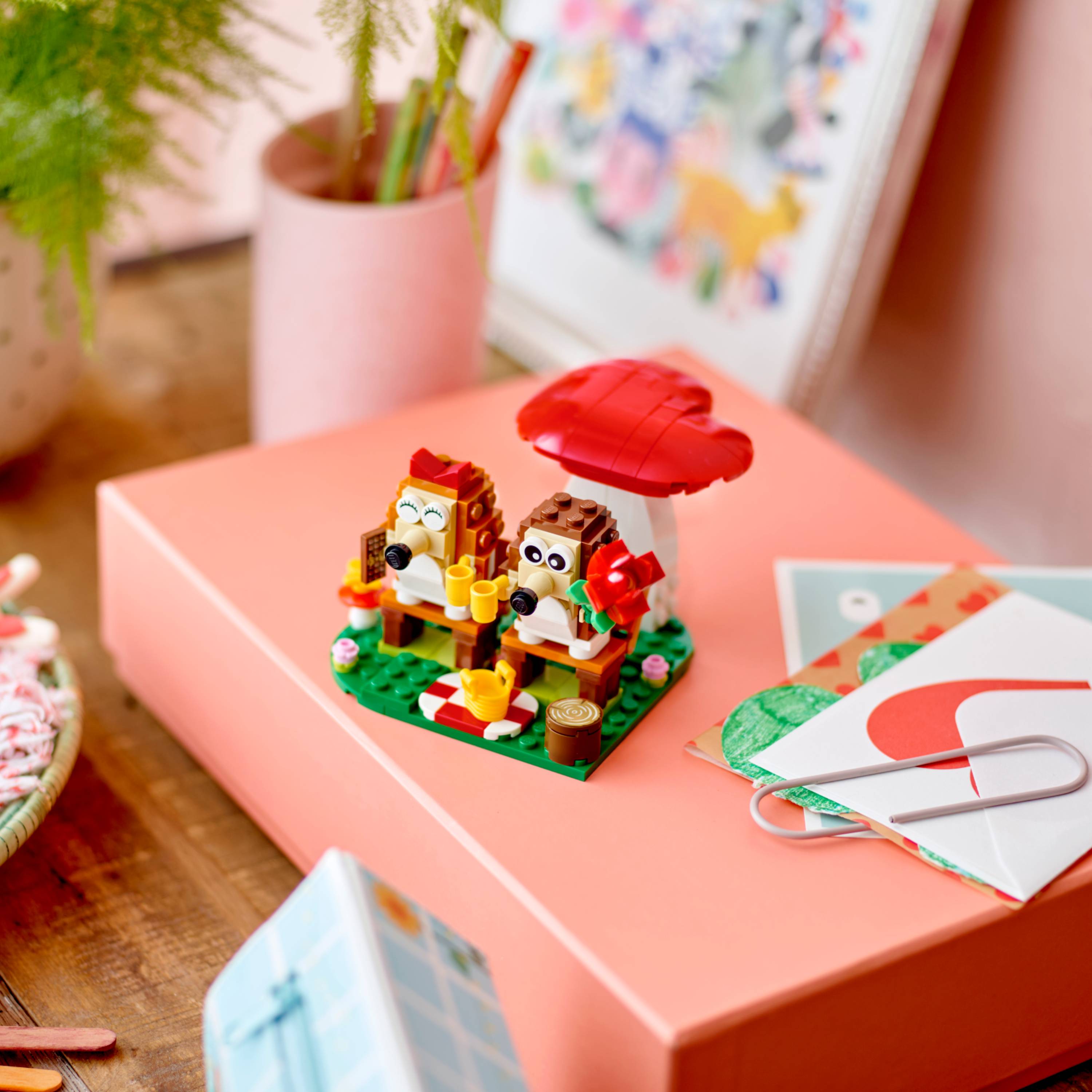Comemore qualquer ocasião especial com este adorável conjunto de construção de animais LEGO® Hedgehog Picnic Date (40711) repleto de recursos divertidos. Meninos e meninas com mais de 8 anos podem construir, exibir e encenar histórias com um conjunto com 2 modelos de ouriços sentados sob um cogumelo em forma de coração em uma base em formato de coração. Este conjunto de construção LEGO colorido está repleto de valor lúdico adicional para as crianças. Os ouriços podem ser destacados do banco para ficarem em pé livremente ou podem sentar-se e fazer um piquenique com manta, rosa, xícaras, torta e borboleta amarela. Eles também têm patas que podem segurar as xícaras. Este conjunto é um excelente presente LEGO para qualquer ocasião especial, incluindo o Dia dos Namorados, e pode ser adicionado a outros conjuntos de construção LEGO (vendidos separadamente) para que as crianças possam desfrutar de histórias de animais ainda maiores. Os ouriços também são um item atraente para exibição em uma prateleira ou mesa de cabeceira quando a brincadeira termina. Conjunto de brinquedos LEGO® com animais – Meninos e meninas a partir de 8 anos podem encenar histórias divertidas com o conjunto de construção LEGO Hedgehog Picnic Date repleto de recursos divertidos 2 modelos de ouriço – O conjunto vem com 2 ouriços fofos que podem ser destacados do banco para ficarem de pé sozinhos e têm patas que seguram copos para agregar valor à brincadeira Um conjunto para celebrar o amor – Apresenta 2 ouriços em um encontro sentados sob um cogumelo em forma de coração em uma base em forma de coração Repleto de acessórios – O conjunto vem com manta, banco, rosa, xícaras, torta e uma borboleta amarela para que os ouriços possam fazer um divertido piquenique Presente de brinquedo de animal – Este conjunto fofo e colorido pode ser dado como presente em ocasiões especiais, incluindo Dia dos Namorados, Dia das Mães ou Dia dos Pais Mais histórias de animais – O conjunto pode ser combinado com outros conjuntos de construção LEGO® para que as crianças possam desfrutar de aventuras ainda maiores com animais Medidas – Este conjunto de construção LEGO® de 166 peças mede mais de 7 cm de altura, 12 cm de largura e 12 cm de profundidade