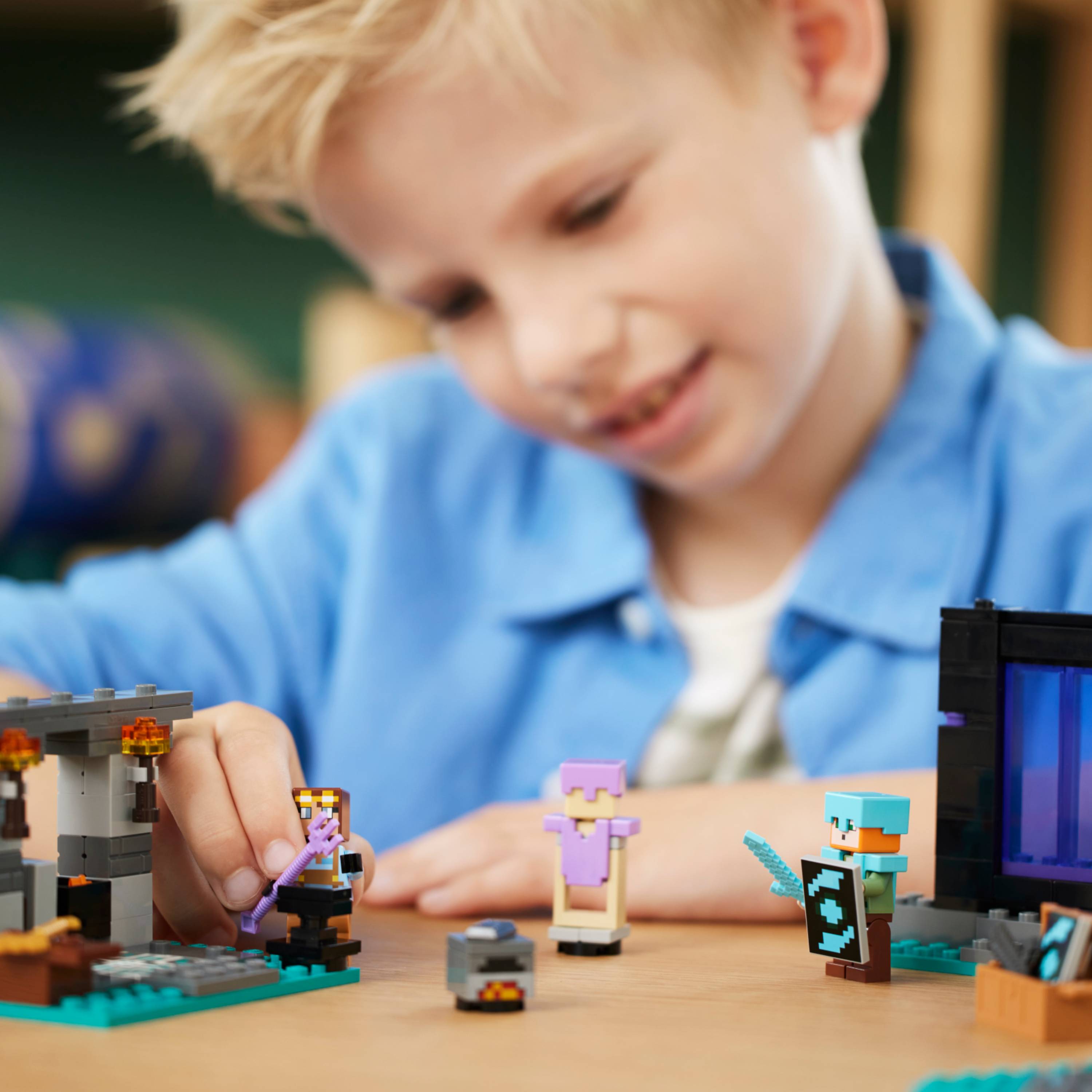 Os jogadores do Minecraft® com 7 anos ou mais vão adorar experimentar as armas e recursos do Minecraft no The Armory (21252). Este kit de construção LEGO® Minecraft é uma ótima ideia de presente para crianças, proporcionando aos jogadores a porta de entrada perfeita para aventuras criativas de Minecraft. Este brinquedo de jogo montável para crianças inclui 2 figuras conhecidas: Alex, o herói de ação do Minecraft, com seu escudo e espada de diamante, e o industrioso Armeiro. Existem 3 ambientes para explorar: a área de trabalho, com bigorna, fornalha, mó e caldeirão cheio de lava; a sala de exibição de armaduras, com seu baú contendo um machado dourado, tridente encantado, espada netherita, escudo e outros recursos do Minecraft; e o portal Nether, com sua porta giratória para a próxima aventura dos jogadores. Este brinquedo de aventura Minecraft também é um conjunto de extensão de dramatização, combinando facilmente com outros conjuntos LEGO Minecraft, especialmente The Nether Portal Ambush (21255), vendido separadamente. Kit de construção versátil LEGO® Minecraft® – Este conjunto prático de armas e brinquedo de aventura do Minecraft para crianças oferece a meninos e meninas a partir de 7 anos uma porta de entrada para aventuras criativas do Minecraft Brinquedos de heróis de ação – Inclui minifiguras de Minecraft® Alex e Armorsmith, 3 ambientes para construir e armaduras e armas de Minecraft, incluindo um machado dourado, 2 espadas, 2 escudos e um tridente encantado Brinquedo de construção em 3 partes para crianças – Inclui um local de trabalho com bigorna, fornalha, rebolo e caldeirão, uma sala de exibição de armaduras com um baú de armas e um portal Minecraft® Nether com portas giratórias Ladrilhos de terracota raros – Este kit de construção LEGO® Minecraft® autenticamente detalhado inclui ladrilhos de terracota, que são altamente valorizados pelos jogadores de Minecraft Presente para crianças a partir de 6 anos – Presenteie os jogadores do Minecraft® com este brinquedo prático de construção e ação com personagens do Minecraft em um bioma repleto de possibilidades de brincar e exibir Conjuntos de jogos combinados para mais diversão – O Minecraft® Armory pode ser jogado de forma independente ou integrado com outros conjuntos de brinquedos LEGO® Minecraft, especialmente The Nether Portal Ambush (21295), vendido separadamente Minecraft® tornado real – Os conjuntos LEGO® Minecraft oferecem às crianças uma maneira diferente de aproveitar o jogo popular, com criaturas, cenas e recursos que ganham vida com a criatividade prática das peças LEGO Presente Minecraft® para jogadores – O conjunto tem 203 peças e a área de trabalho do Armeiro mede mais de 6 cm de altura, 9 cm de largura e 6 cm de profundidade