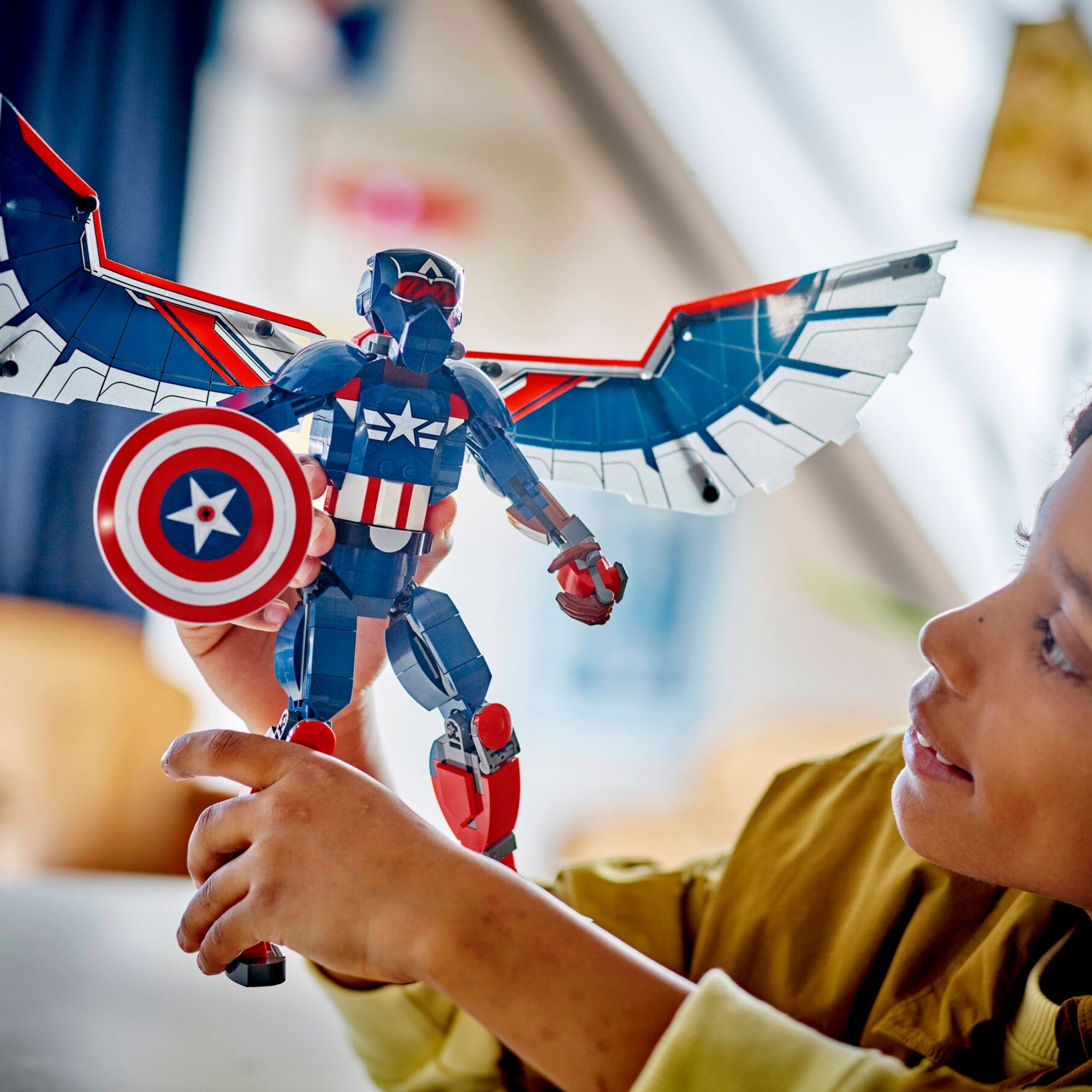 Coloque a ação do filme da Marvel nas mãos de jovens super-heróis com a figura de construção LEGO® Marvel New Captain America autenticamente detalhada e totalmente articulada (76296) para crianças de 8 anos ou mais. Para esta encarnação do supersoldado da Marvel, o Falcon alado assume o papel do Capitão América, trazendo uma dimensão extra à experiência de brincadeira das crianças. O brinquedo de super-herói montável tem mais de 28 cm de altura e tem articulações móveis nos ombros, braços, quadris e pernas, o que permite poses de ação realistas enquanto as crianças mergulham em uma encenação imaginativa. Grandes asas de papel alumínio são presas às costas da figura. As asas podem ser dobradas para imitar o bater de asas e removidas facilmente quando a ação volta para o chão. A figura do Capitão América carrega seu escudo icônico e tem um brinquedo drone Redwing montável fixado em suas costas, que as crianças podem facilmente destacar para uma brincadeira independente. Para maior diversão digital, os construtores podem aumentar o zoom, girar os conjuntos em 3D e acompanhar seu progresso usando o aplicativo divertido e intuitivo LEGO Builder. Brinquedo montável do Capitão América para crianças – LEGO® Marvel New Captain America Construction Figure coloca a ação do super-herói nas mãos de meninos e meninas de 8 anos ou mais Figura articulada – As articulações móveis dos ombros, braços, quadris e pernas do Capitão América permitem poses de ação realistas enquanto as crianças levam o herói de ação em infinitas aventuras imaginativas Acessórios autênticos – A figura do Capitão América carrega seu escudo icônico e tem um drone Redwing montável fixado em suas costas, que as crianças podem destacar para uma brincadeira independente. Presente de super-herói da moda – Para esta encarnação do super soldado da Marvel, a figura alada do Falcão assume o papel do Capitão América, trazendo uma dimensão extra à ação do jogo Presente para os amantes dos filmes da Marvel – Dê este brinquedo de super-herói montável aos fãs da ação dos Vingadores do Universo Marvel Instruções de construção 3D – As crianças podem baixar o aplicativo LEGO® Builder para uma experiência de construção envolvente, com ferramentas digitais para ampliar e girar modelos em 3D, salvar conjuntos e monitorar o progresso Aumente a diversão dos super-heróis – Há mais figuras de construção LEGO® Marvel na série para colecionar, conjuntos vendidos separadamente LEGO® Marvel Avengers ação para crianças – A figura do Capitão América de 359 peças tem mais de 28 cm de altura: grande o suficiente para ação épica, pequena o suficiente para as crianças levarem para onde quer que vão