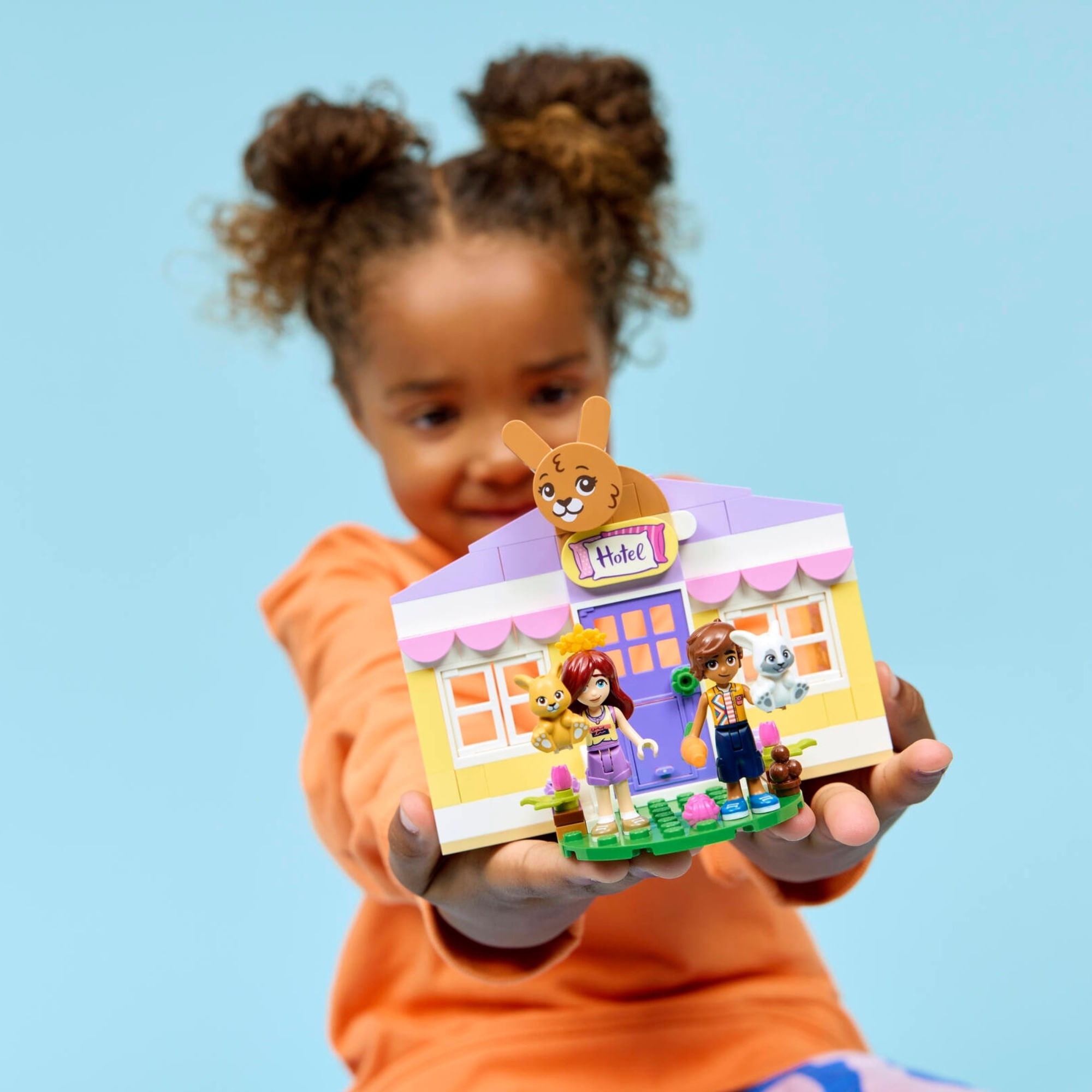 2 PERSONAGENS LEGO® FRIENDS – Este brinquedo LEGO Friends Hotel dos Coelhos de Heartlake City (42679) vem com 2 minibonecas, Paisley e Leo, além de 2 figuras de animais para inspirar a imaginação.