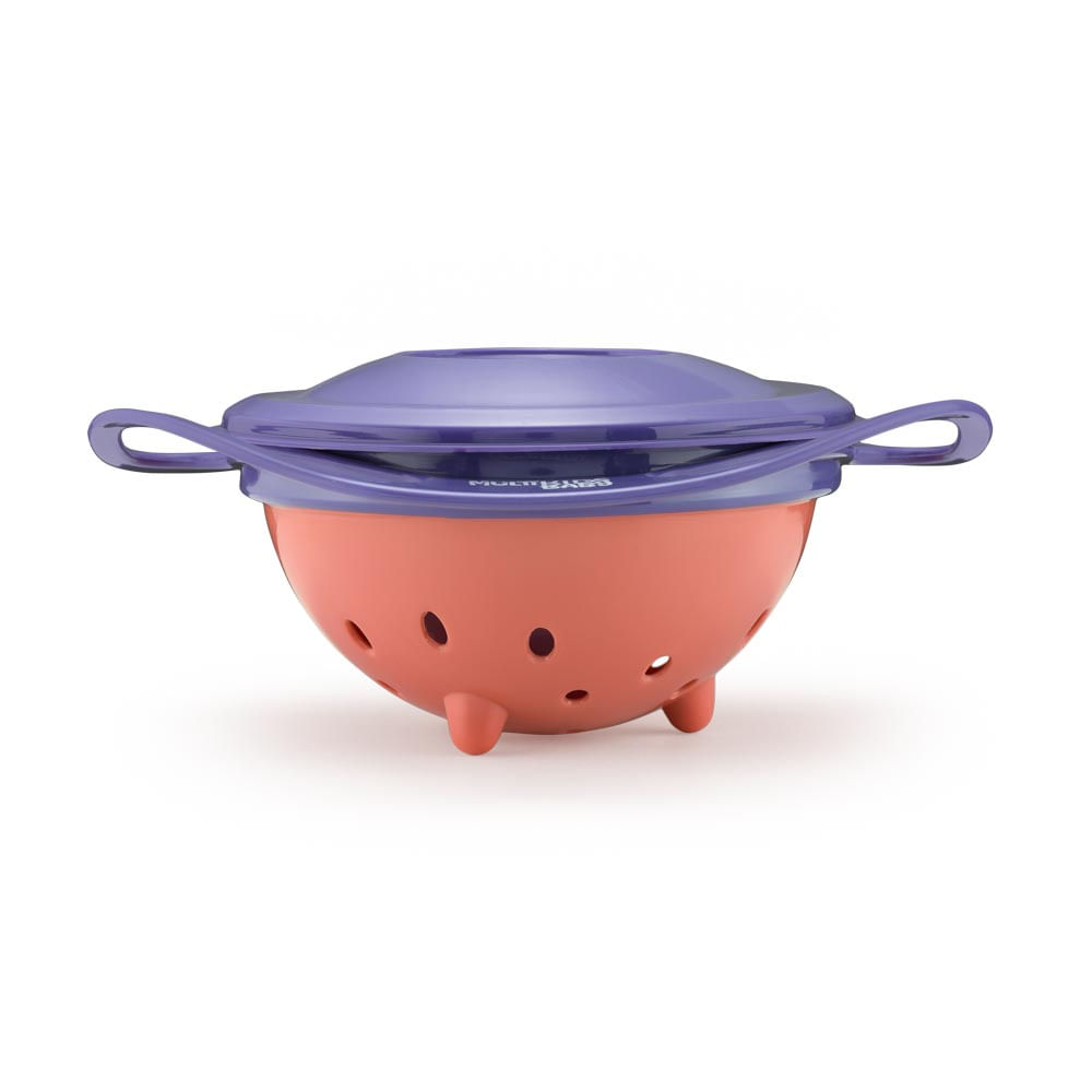 Seu sistema de rotação 360° evita que o alimento caia, prevenindo a bagunça e incentivando a autonomia dos pequenos, com segurança.