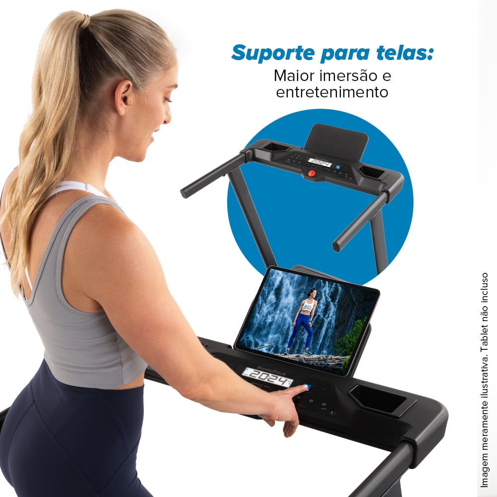 Corridas, caminhadas, trilhas e muito mais! Percorra o mundo do conforto da sua casa e monitore todos os seus dados vitais com a sua nova esteira.