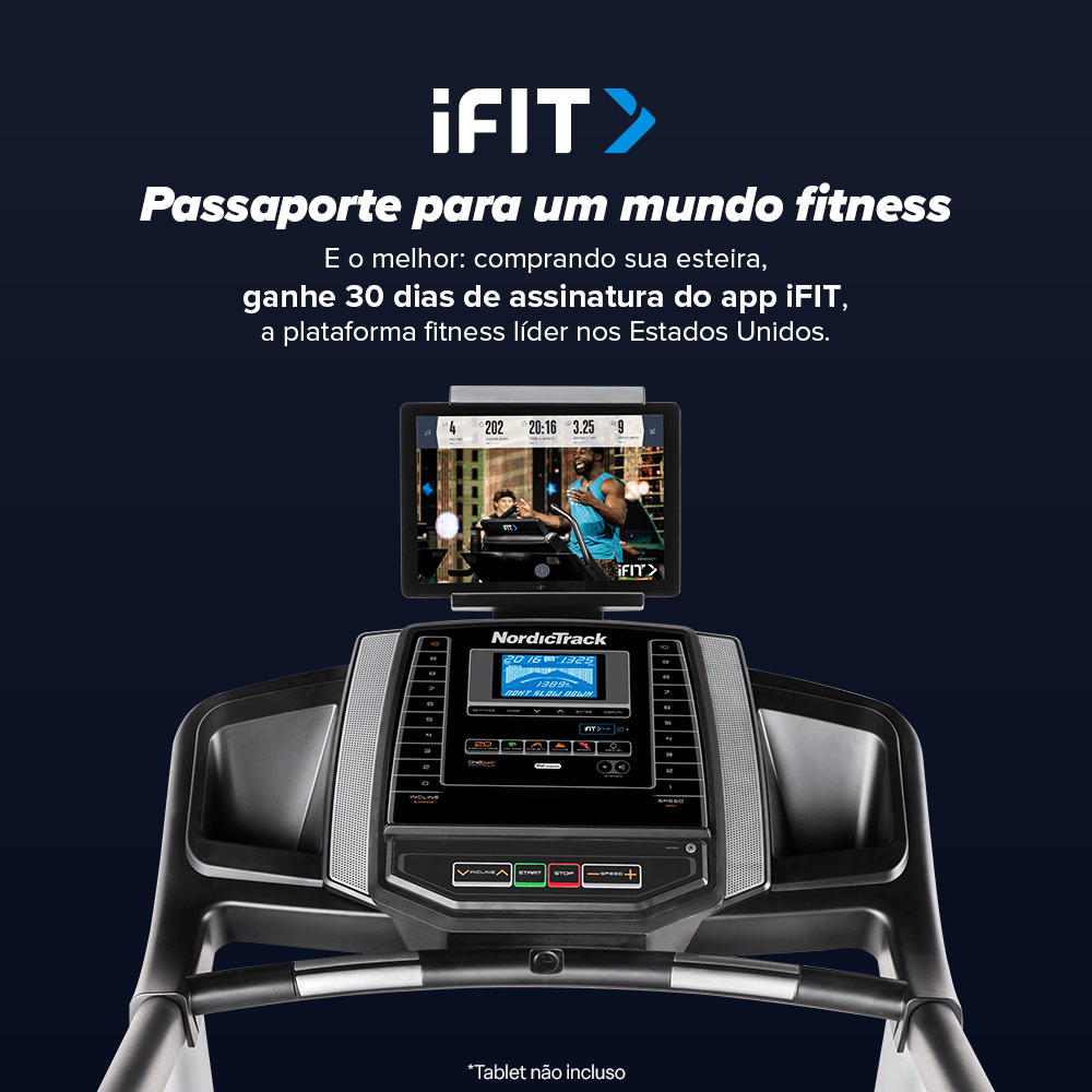 A esteira conta com medidor cardíaco Handgrip integrado, 20 programas predefinidos e é compatível com a iFIT, a plataforma fitness líder nos Estados Unidos. Conecte-se ao iFIT via Bluetooth, utilizando seu tablet ou celular, e tenha acesso a milhares de treinos interativos e imersivos criados por profissionais de renome mundial.