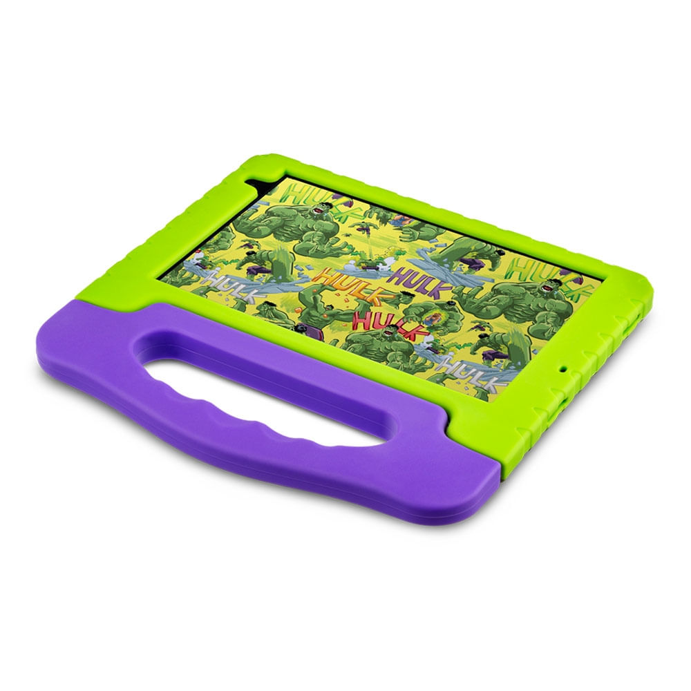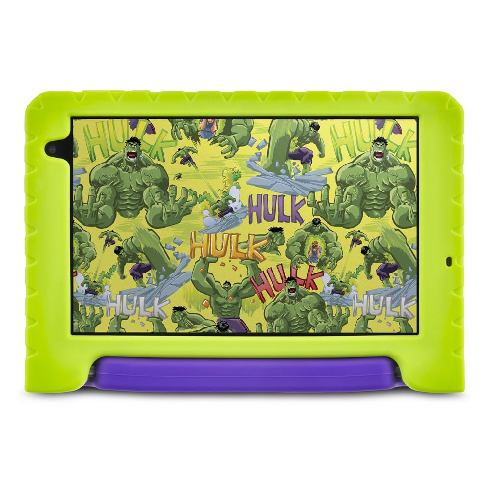 O Tablet Infantil Hulk Multi NB441 chegou para liberar o poder da diversão! Inspirado na força e resistência do herói mais poderoso da Marvel, este tablet combina alto desempenho, design temático e segurança para as crianças.