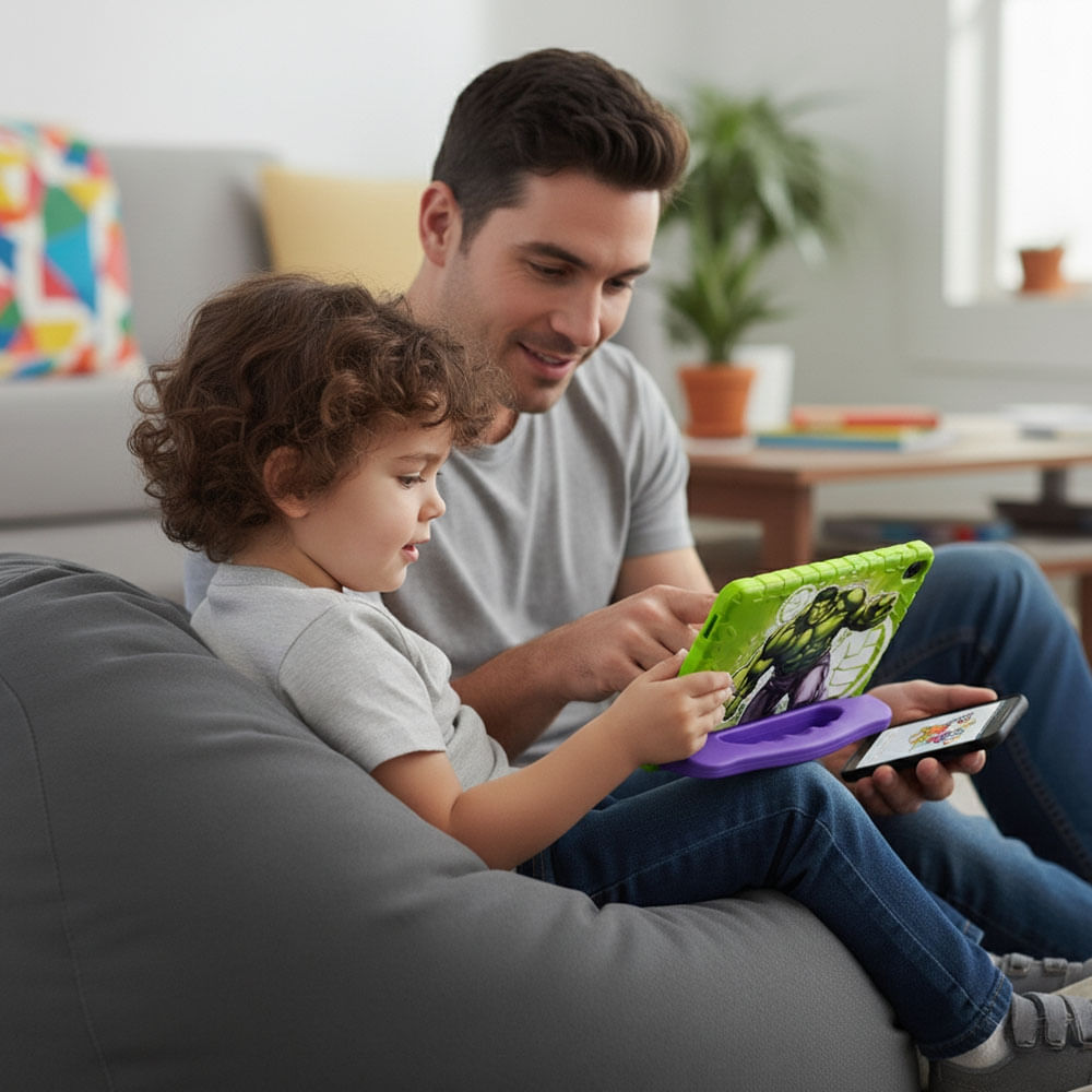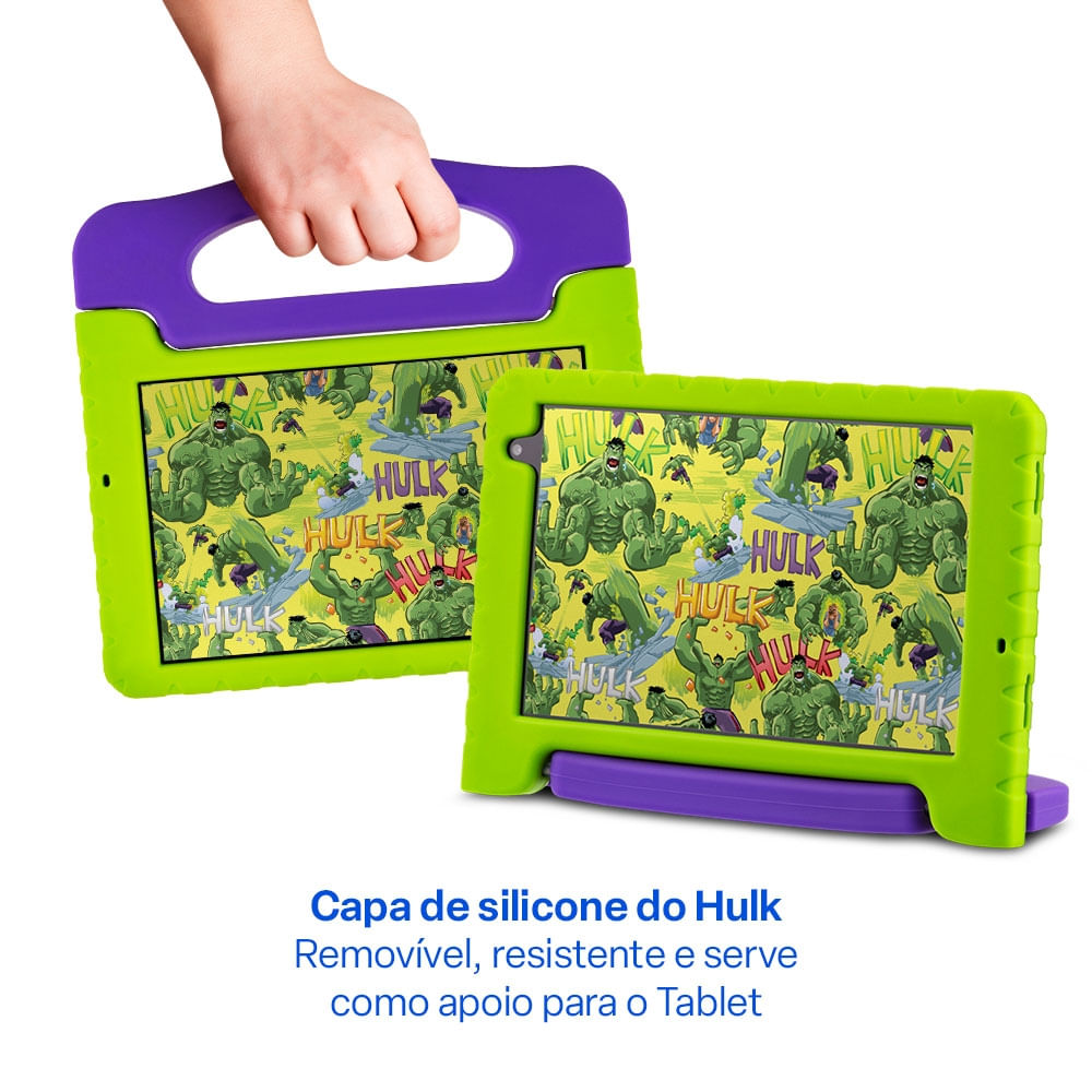 O Tablet Infantil Hulk é a escolha perfeita para unir entretenimento, aprendizado e a força de um verdadeiro Vingador!