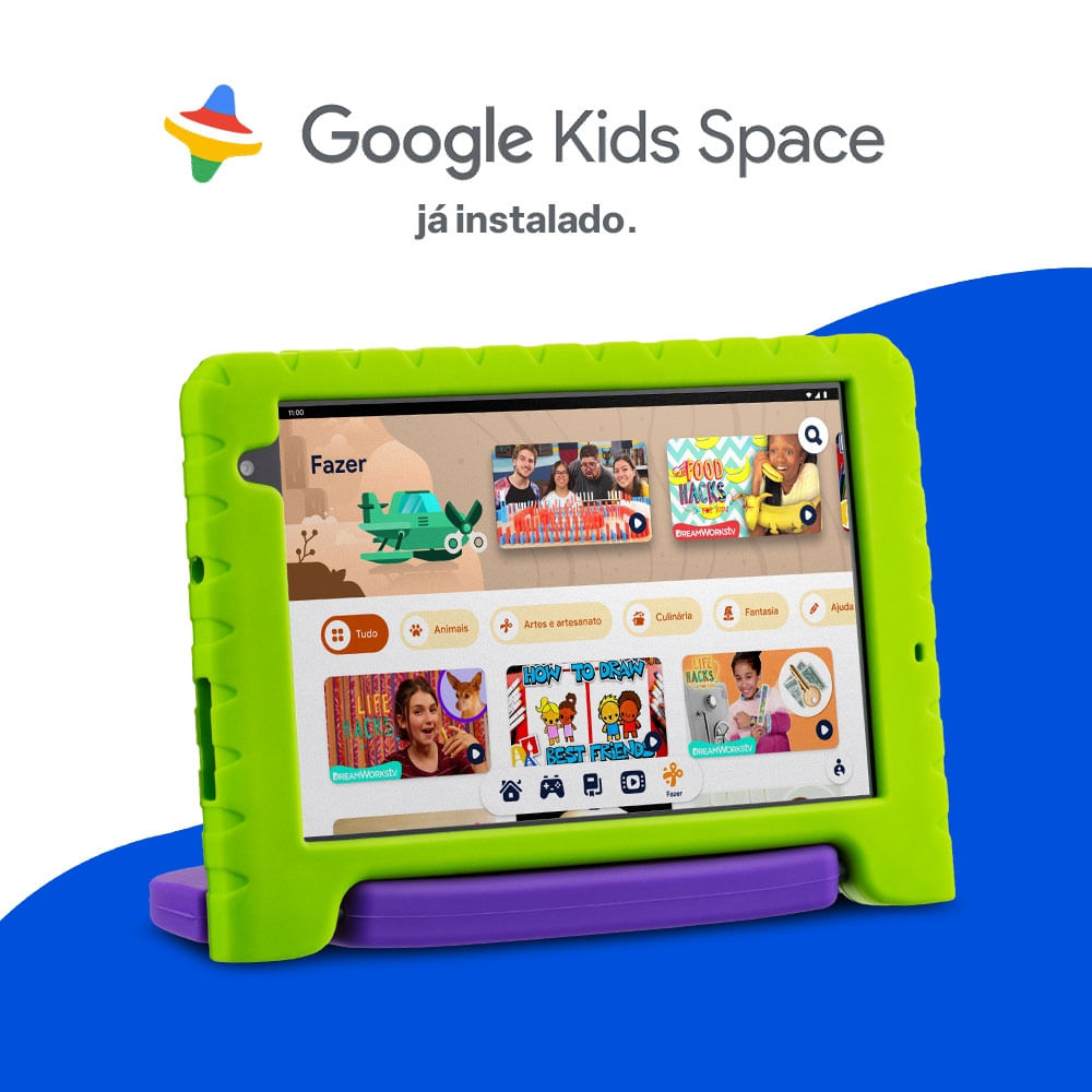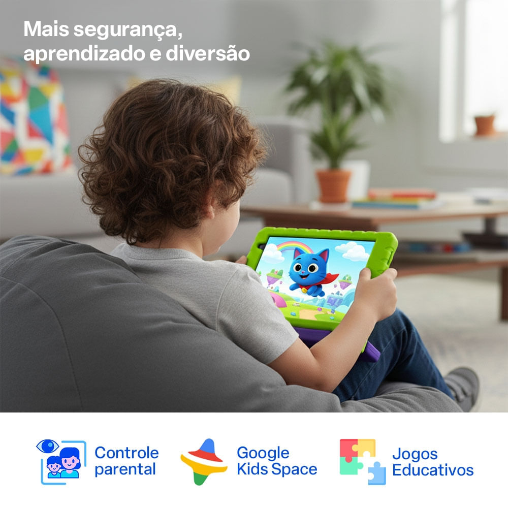 A bateria de 4000mAh garante horas de uso, acompanhando o ritmo agitado dos pequenos heróis.