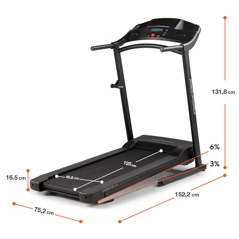 Corra ou caminhe sem se preocupar. A lona da ProForm Cadence 4.0 é ampla e espaçosa para que você se concentre apenas no exercício.