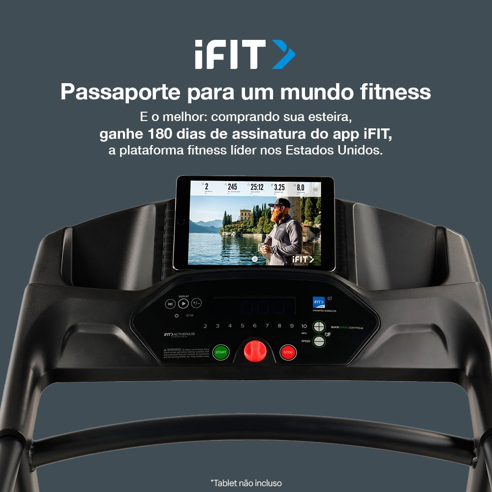 E o melhor: comprando sua esteira, ganhe 30 dias de assinatura do app iFIT, a plataforma fitness líder nos Estados Unidos. Com o iFIT, você conecta sua esteira a um tablet ou celular via Bluetooth e faz rotas de treinos por todo o mundo, acompanhado por um personal trainer durante o percurso.