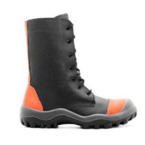 Bota Motosserrista com Biqueira de Aço e Sobre Biqueira em PU Preta com Detalhes em Laranja CA13179 - Safetline