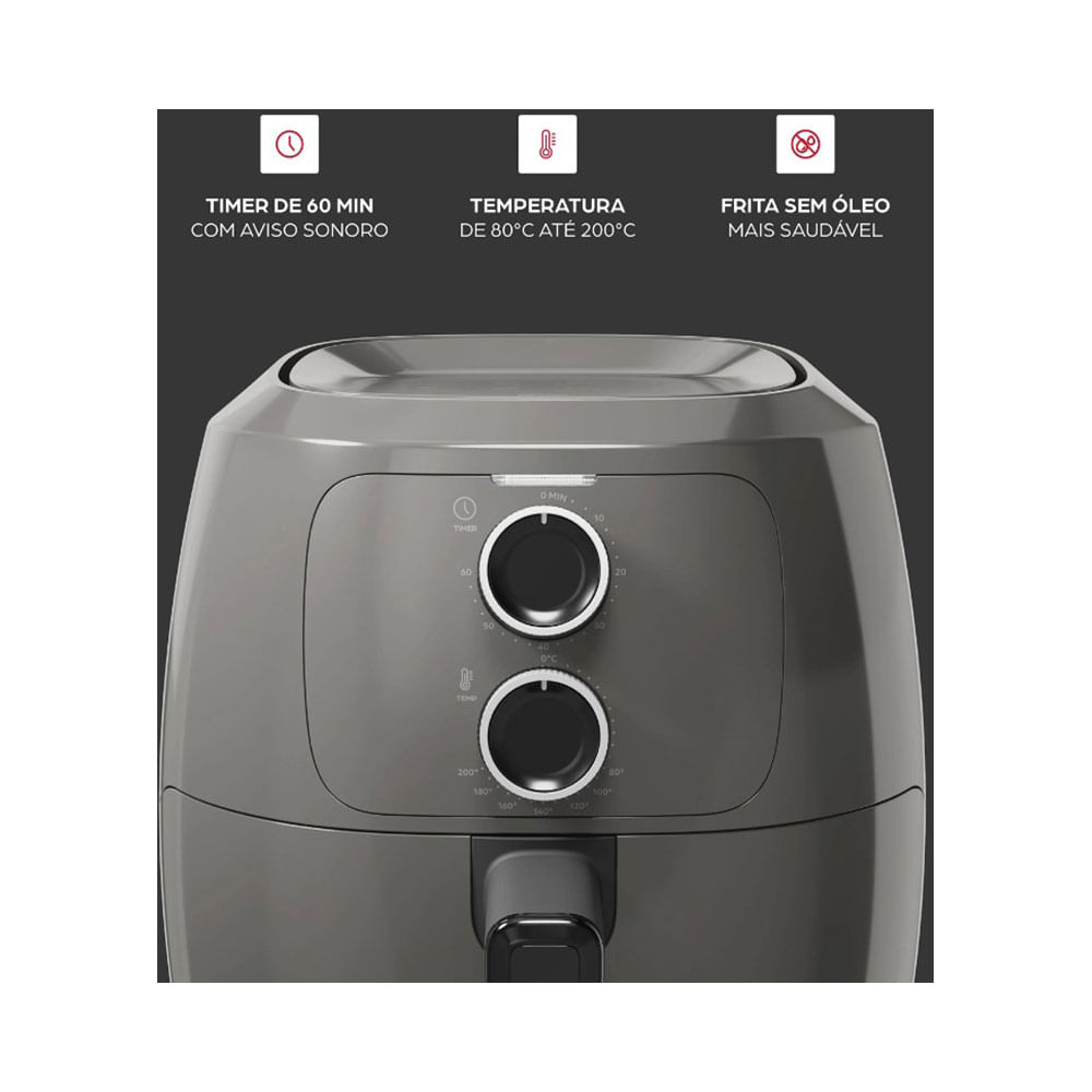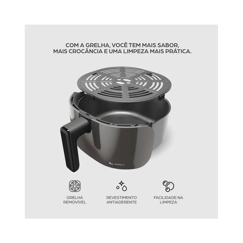 Fritadeira Elétrica Family 4L - Wap Mais sabor, crocância e praticidade para você inovar nas receitas! Com a capacidade de 4 litros, a Fritadeira Elétrica WAP Family tem potência e espaço para transformar cada aventura na cozinha em descobertas deliciosas. Parceira em tamanho família, ela despertará sua criatividade no preparo de refeições saborosas, mais saudável e prática em grandes porções. A preocupação com pontos frios ou partes malcozidas ficou no passado! Com a tecnologia de circulação de ar quente em 360°, a AirFry Family 4L é a chave para receitas irresistíveis. Ela envolve os alimentos em todos os ângulos, garantindo resultados crocantes por fora e macios por dentro. O design quadrado do cesto da air fryer 4L tem lugar de sobra para suas receitas. O espaço extra garante que a cocção de cada pedaço seja uniforme e rápida. Além disso, a grelha removível permite uma circulação eficiente do ar para realçar o sabor das refeições. Para manter sua cozinha sempre impecável, o revestimento antiaderente torna a limpeza uma tarefa simples e eficaz. Impedindo que os alimentos e a gordura grudem na grelha e no cesto, ele ainda possibilita a higienização dos acessórios na máquina de lavar louças. A potência de 1500W garante resultados de dar água na boca aos seus pratos. Ganhe mais sabor, enquanto economiza tempo, mesmo no preparo de grandes porções. Domine o ponto de cada receita como os chefs, ao ajustar a temperatura da Fritadeira Elétrica WAP Family, que tem a amplitude de 80°C a 200°C. Descubra uma maneira mais saudável e prática de cozinhar com a air fryer 4L. Frite, asse, desidrate ou toste seus alimentos favoritos sem a necessidade de óleo ou manteiga. O timer de 60 minutos assegura que suas receitas estejam prontas no tempo certo, enquanto o aviso sonoro indica o término do preparo. Liberte sua imaginação e crie receitas incríveis para toda a família. A Fritadeira Elétrica WAP Family 4L é a escolha perfeita para refeições saudáveis, práticas e cheias de sabor. - FRITURA SEM ÓLEO: A tecnologia de circulação de ar em 360° proporciona crocância aos alimentos sem o uso de óleo. - GRELHA REMOVÍVEL: Experimente uma variedade de receitas sem se preocupar com a limpeza. - CESTO QUADRADO: O design inteligente garante espaço de sobra para que cada item tenha a cocção perfeita. - Ganhe mais sabor enquanto economiza tempo, mesmo no preparo de grandes porções. Inovadora, a grelha removível promove uma experiência de cozimento sem esforço e prática no dia a dia da cozinha. Basta retirá-la, lavar facilmente e pronto - liberdade para saborear suas receitas sem se preocupar com a bagunça. - CIRCULAÇÃO DE AR EM 360°: O calor distribuído no interior da fritadeira elétrica proporciona mais agilidade e eficiência no preparo dos pratos. Dessa forma, os alimentos são cozidos de maneira uniforme, independente da posição no cesto, eliminando o óleo em excesso, para receitas saborosas, crocantes e mais saudáveis. - WAP AIRFRY FAMILY PROSDÓCIMO 4L: Frite, asse, desidrate ou toste as suas refeições favoritas, sem gordura, fumaça e cheiro de fritura para os amigos e a família sem esforço. Conheça a Fritadeira Elétrica WAP AirFry Family, a parceira ideal na cozinha! - Frequência: 60Hz - Potência: 1500W - Capacidade total: 4L - Capacidade útil: 4L - Comprimento do cabo elétrico: 0,8m - Tipo de tomada (amperes): 20A (127V) / 10A (220V) - Timer: 0-60 min - Temperatura: 80-200 °C - Aviso sonoro - Desligamento automático - Luz indicadora de funcionamento - Revestimento antiaderente - Material: Polímeros e Metais - Ação do produto: Assar, cozinhar, gratinar e fritar seus alimentos - Tipos de alimentos que comporta: Prepara petiscos, massas, carnes, pastéis, pão de queijo, churros, peixes, vegetais entre outros. Voltagem: 110V ou 220V Cor: Preto e Cinza Peso líquido: 3,3 kg Dimensões do produto (C x L x A): 32,4 x 27,3 x 29,7 cm Fabrocante: Wap