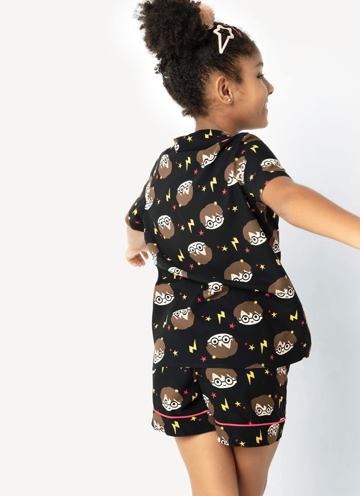 Descrição: Short doll viscose com estampa exclusiva Harry Potter <3. Para noites tranquilas de sono e momentos de relaxamento em casa. Detalhes: •Short doll com manga curta •Gola alfaiate •Estampa repetida Harry Potter •Fechamento frontal por botões •Acabamento feito em vivo contrastante •Shorts com elástico macio embutido •Confeccionado em viscose. Cuidados: Lavagem e conservação: Lavagem à mão, não alvejar; não secar em tambor; não Passar; não limpar a seco (mais informações, vide na etiqueta). Garantia: deverá ser encaminhado dentro da embalagem original; sem indicações de uso; acompanhado de nota fiscal e com todos os Itens constante na solicitação da compra.