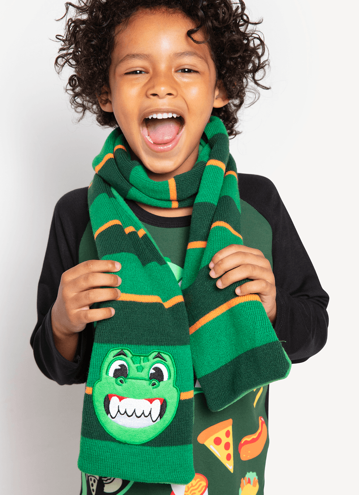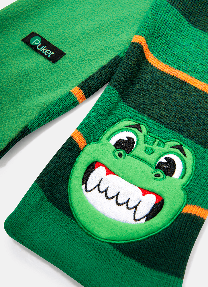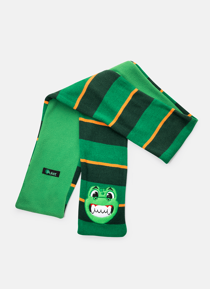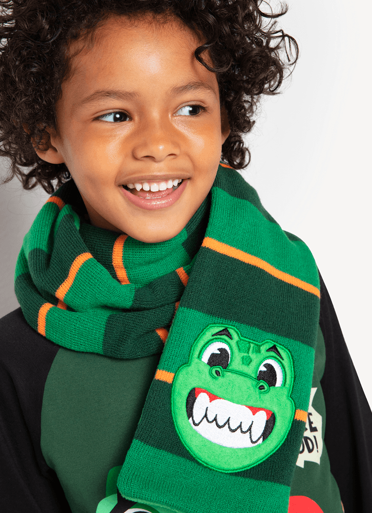 • Cachecol em tricô com jacquard de listras. Possui 2 apliques bordados aplicados nas pontas. Sem forro. • Tamanho: Único • Medidas: 150 cm x 13 cm (AxL) • Cor: verde • Indicado para: Crianças / adolescentes • Ocasião: Escolar / passeio • Material externo: Acrílico • Peso do produto: 0,080 • Garantia: deverá ser encaminhado dentro da embalagem original; sem indicações de uso; acompanhado de nota fiscal e com todos os itens constante na solicitação da compra • Limpeza e conservação: Para limpeza, não lavar com escova abrasiva; lavar à mão com sabão neutro e água corrente; lavar separadamente as cores fortes das claras; não utilizar produtos abrasivos como cloro e água sanitária; não deixar a peça de molho; secar à sombra; não passar o ferro. • Resistente à agua: não