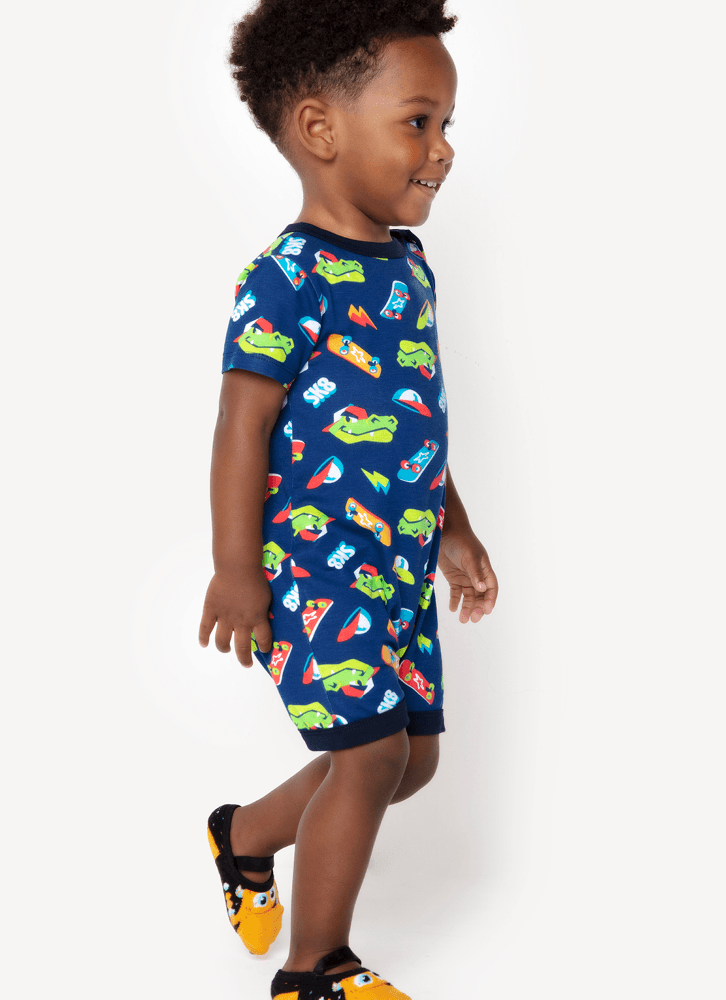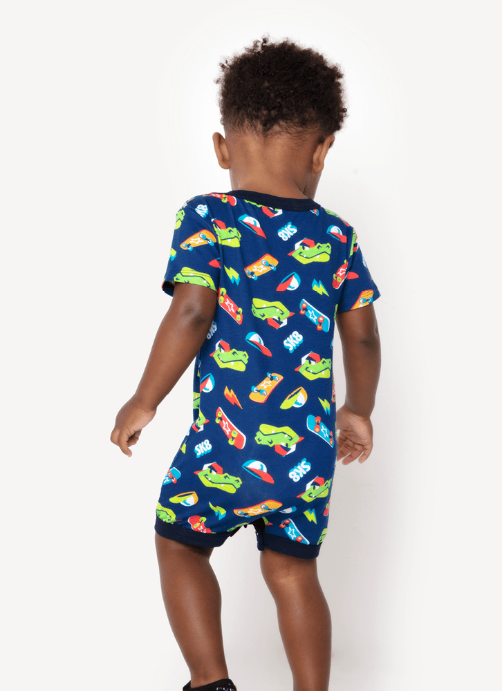 Macacão Manga Curta Bebê Viscolycra Dinossauro Skate