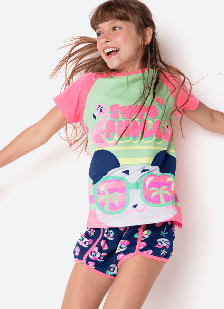 Pijama Manga Curta Viscolycra Menina Teen Panda Miami