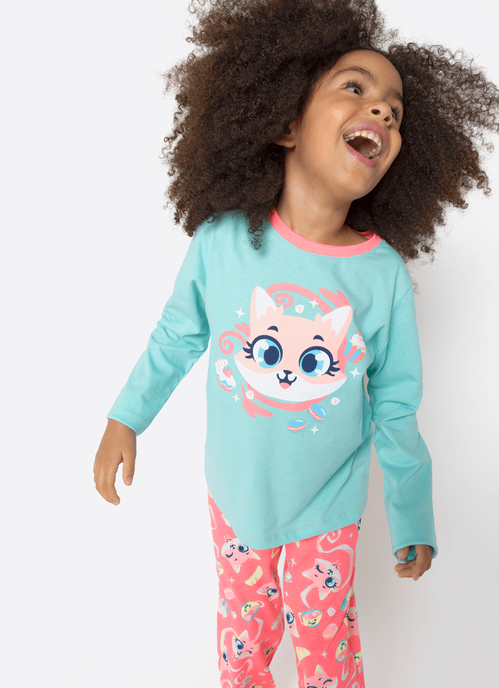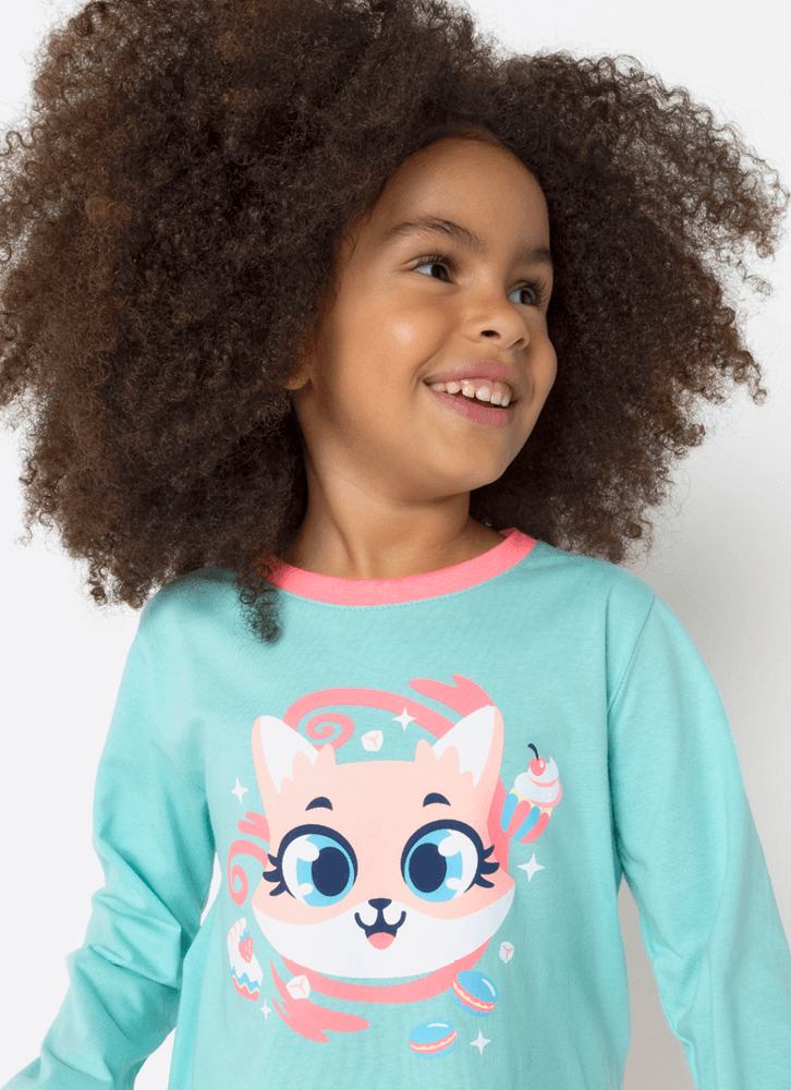 Pijama Manga Longa Algodão Menina Raposa Confeiteira