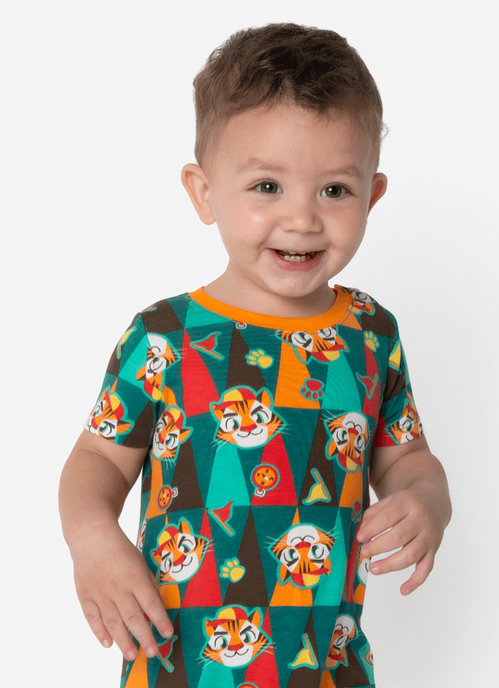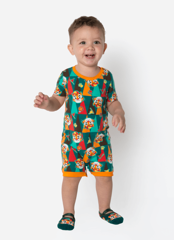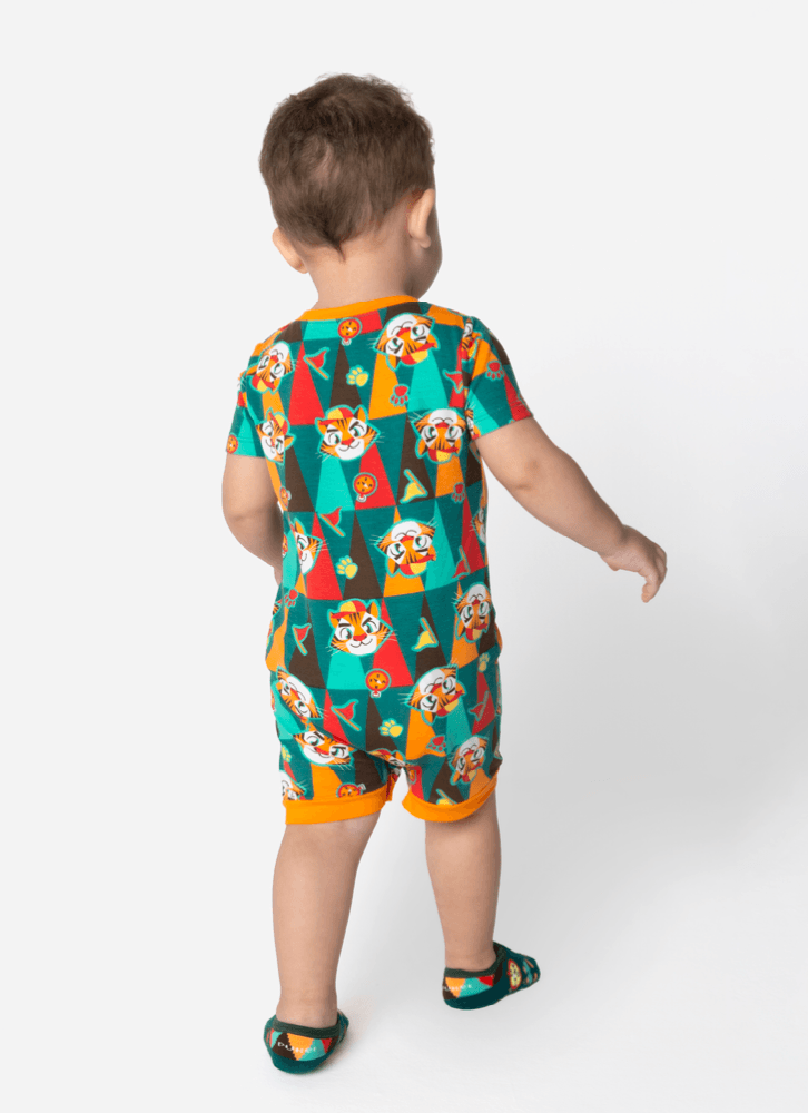 Macacão Manga Curta Viscolycra Bebê Menino Tigre Camping
