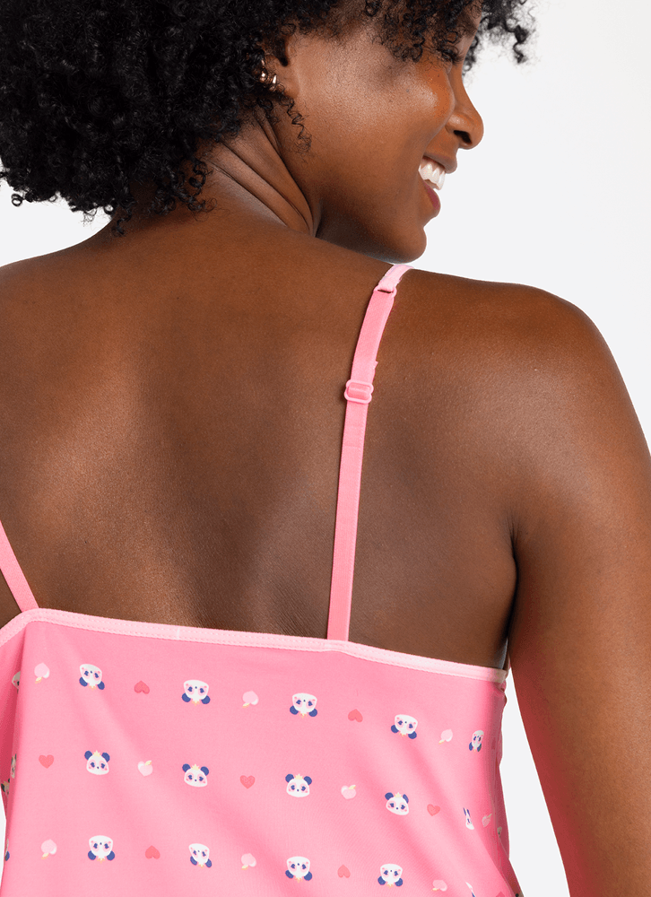 Short doll Microfibra Adulto Mini Panda Romântico • Alça regulável • Tecido: Microfibra de poliamida • Toque geladinho • Estampa de panda • Tecido Externo: 93% Poliamida 7% Elastano • Shorts com cós de elástico embutido • Como lavar e conservar bem meu produto: Lavagem a mão, Não alvejar, Não secar em tambor, Secagem em varal por gotejamento a sombra Não passar ou utilizar vaporização, Não limpar a seco, Não limpar a úmido • Garantia por defeito: Deverá ser encaminhado dentro da embalagem original; Sem indícios de uso; acompanhado de nota fiscal e com todos os itens constantes na solicitação de troca.